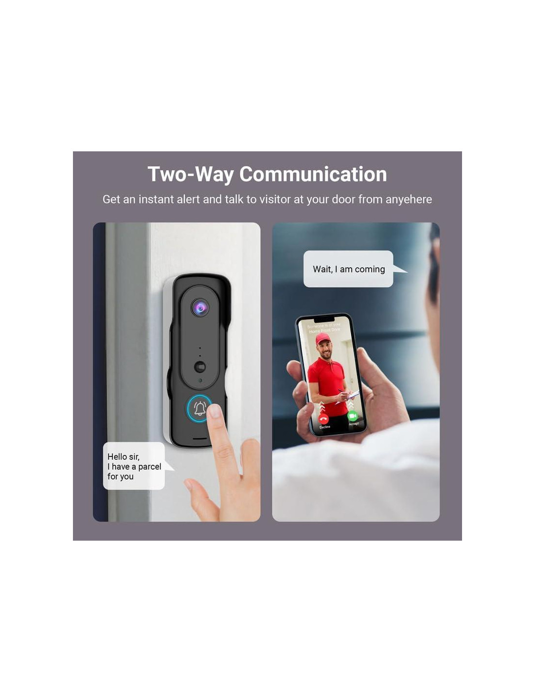 - [Audio Bidireccional]: Con un timbre de video incorporado de audio bidireccional, puedes comunicarte fácilmente con visitantes o personal de entrega desde cualquier lugar. Ya sea en casa o en movimiento, puedes saludar a los invitados o disuadir a visitantes no deseados en tiempo real.