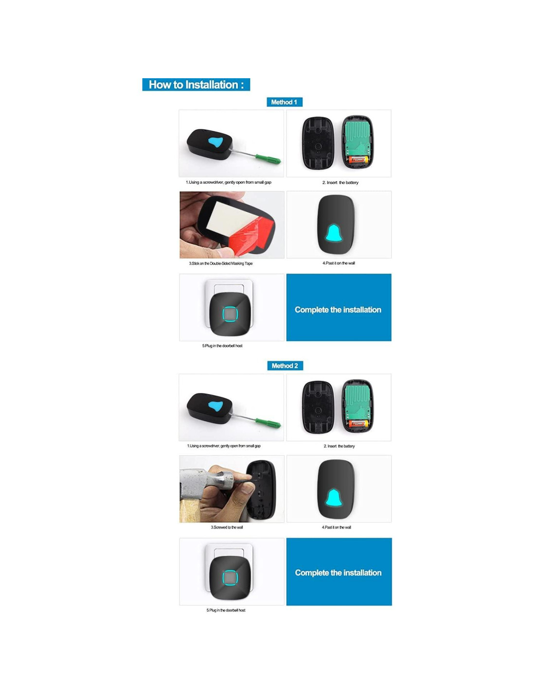 - Fácil de Instalar y Usar - Simplemente conecta el receptor a un enchufe eléctrico (no se requieren baterías para el receptor principal). El botón de presión se puede fijar al marco de la puerta con las cintas adhesivas adjuntas. Simplemente monta el timbre donde lo necesites y estarás listo para usar.