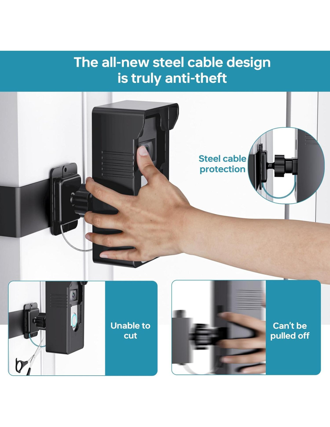 - Soporte de Timbre Antirrobo Ajustable Patentado: Diseñado para seguridad y flexibilidad, el soporte de timbre de video antirrobo de Lifemaytec cuenta con un cable de seguridad de acero patentado para bloquear físicamente tu dispositivo contra robos. La base de bola permite ajustes de ángulo suaves y de rango completo para una vista clara, ideal para monitorear paquetes y visitantes sin interferir con la detección de movimiento o el audio bidireccional. La cubierta deslizante incluye tres adhesivos de "No Molestar" para mayor privacidad.