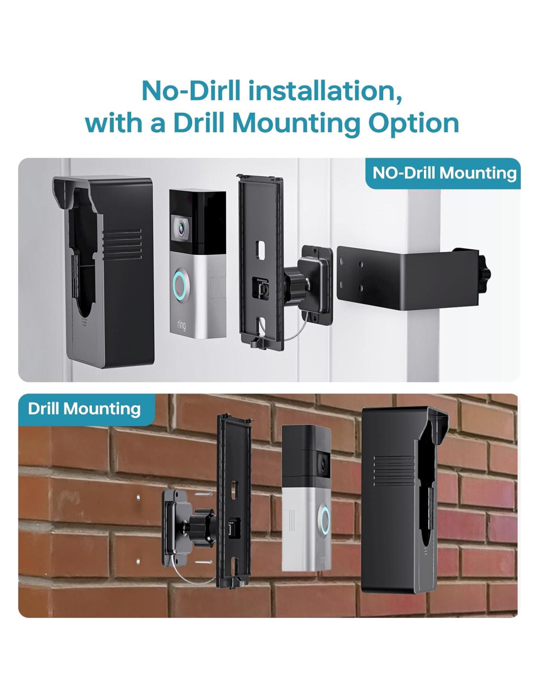 - Solución de Montaje Universal: Perfecto para puertas interiores (de apertura izquierda o derecha) con un grosor de 1.21"-2.4" y espacios superiores a 0.06". Una opción ideal de soporte para timbre Ring y soporte para timbre Blink que es amigable para inquilinos. Los puertos de cable integrados permiten un fácil cableado para soportes de timbre Ring con cable y carga no removible para versiones inalámbricas como el timbre de video Blink. Nota: No apto para puertas de seguridad metálicas o puertas de pantalla. Siempre confirma las medidas de la puerta antes de la compra.