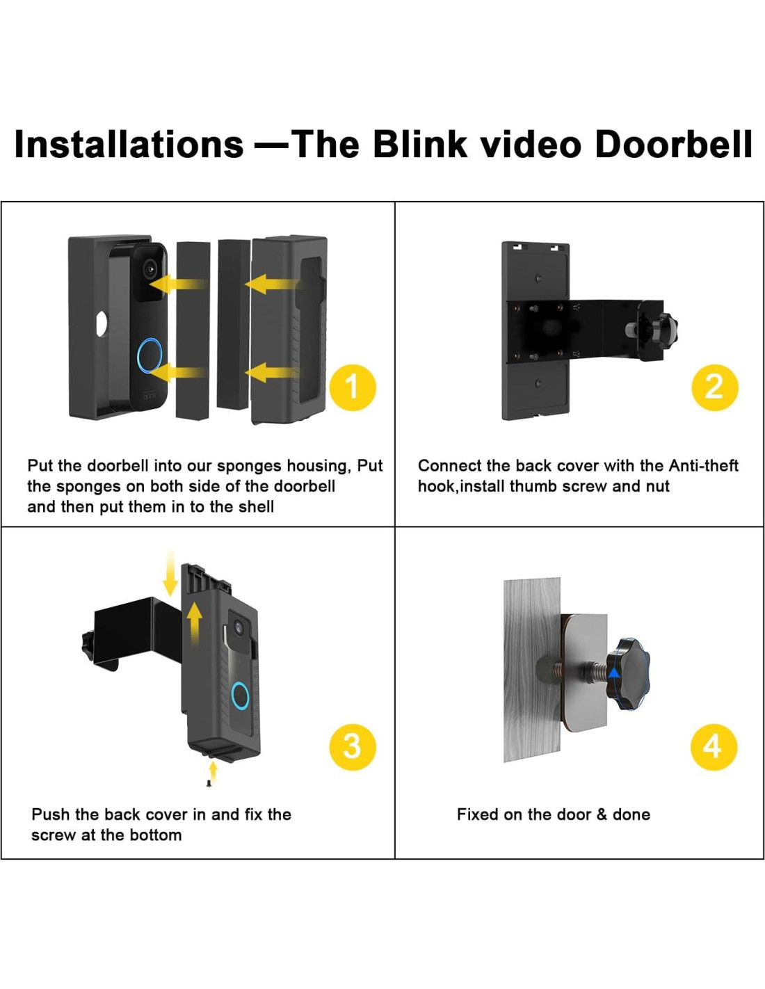 - DISEÑO EXCLUSIVO: Diseñado especialmente para el timbre de video Blink, gran diseño para casas, apartamentos, alquileres, residencias estudiantiles, negocios. No necesita taladrar la puerta o la pared para el timbre de video Blink 1RA GENERACIÓN solamente
