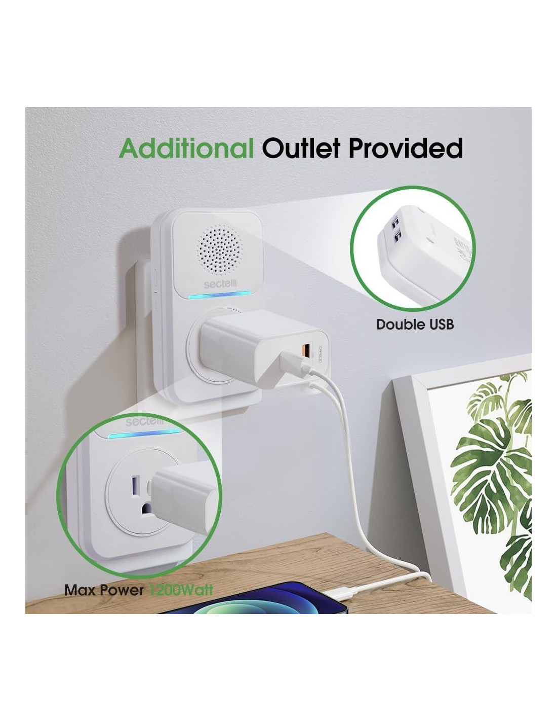 - con 1 Toma y 2 Cargadores USB: El diseño sofisticado resuelve el problema de los timbres ordinarios que ocupan tomas de corriente. Este timbre inalámbrico viene con una toma, además este timbre tiene 2 puertos USB, por lo que no solo es un timbre, sino también una toma y cargador USB. Controlamos estrictamente la calidad del producto. En caso de malfuncionamientos, contáctenos lo antes posible para soluciones.