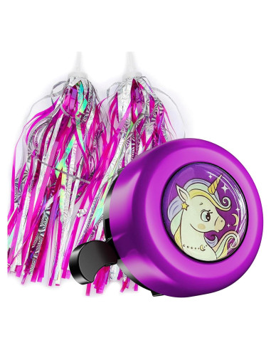 - Diseño Vibrante: Nuestro timbre de bicicleta para niños presenta una pegatina vibrante y adorables streamers de bicicleta, adecuado para niños y niñas. Con el diseño vibrante, este adorable timbre de bicicleta añade un elemento llamativo al paseo de tu pequeño. También es un regalo perfecto para cumpleaños, Navidad o cualquier ocasión especial.