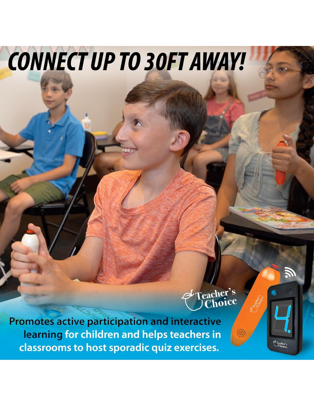 - Sistema de juego de timbre inalámbrico de joystick para 4 jugadores de Teacher's Choice - La consola muestra el número del primer participante que presiona en la consola principal y bloquea otros timbres durante 10 segundos.