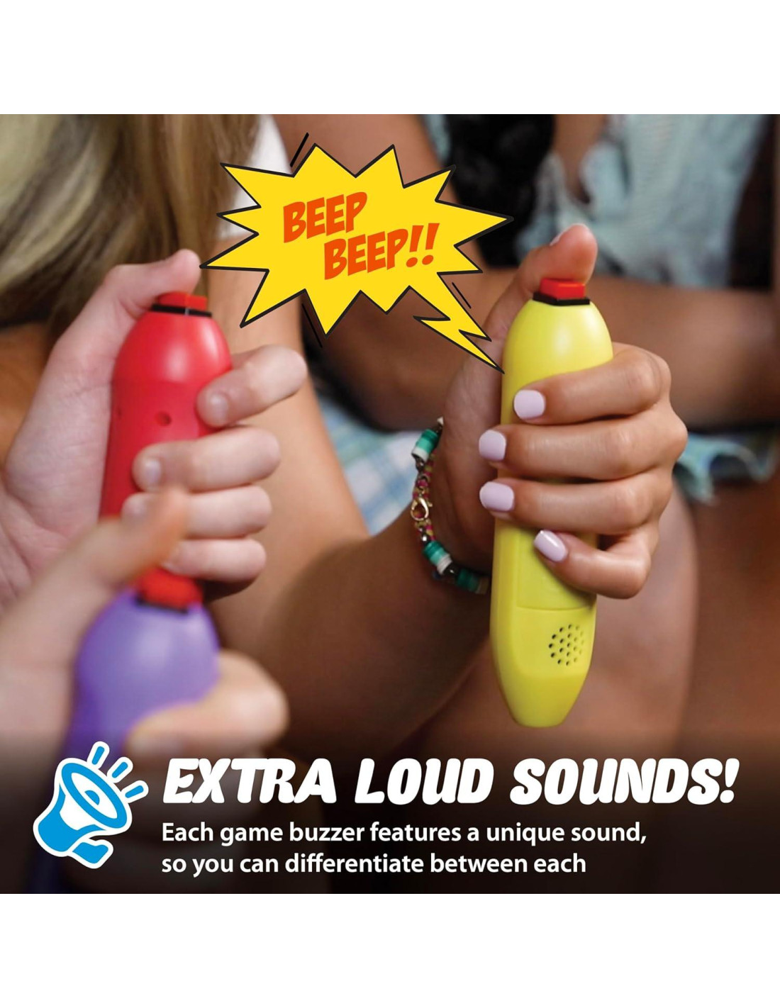 La tecnología inalámbrica permite que los jugadores estén a una distancia entre sí, un entorno perfecto para el aula. Cada timbre de juego cuenta con un sonido único, por lo que puedes diferenciar entre cada uno, ¡agregando algunos ruidos divertidos a tu noche de juegos! Promueve la participación activa y el aprendizaje interactivo para los niños, ideal para niños tímidos que normalmente no participarían en un grupo.