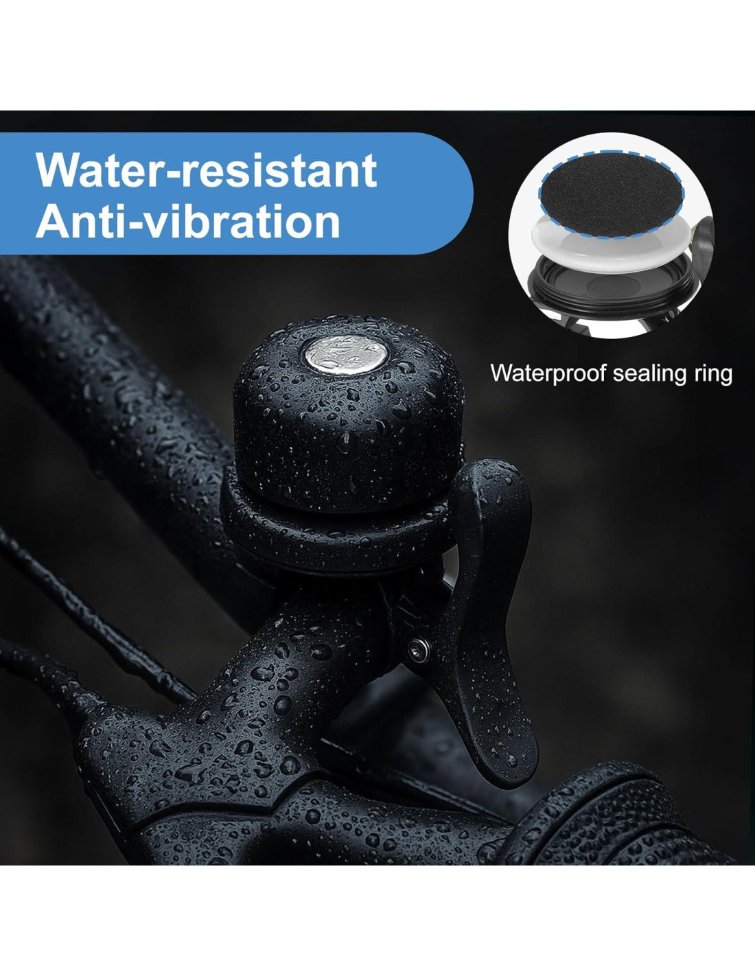 - Protección Impermeable: nuestro soporte de bicicleta utiliza un nuevo ajuste de ranura impermeable con un anillo de goma sellado de alta calidad para proteger tu etiqueta de la lluvia, ya no necesitas preocuparte por la conducción diaria bajo la lluvia. Ten en cuenta que la campana de bicicleta no puede estar expuesta a la lluvia intensa durante mucho tiempo