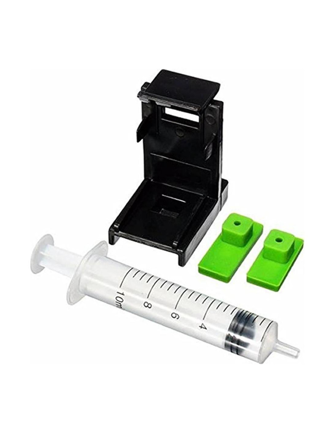 Características: 100% Nuevo y de alta calidad. Simple, conveniente y rápido. Resuelve la operación manual complicada y costosa del cartucho original. Usa este kit para bombear tinta, puede extraer el aire y las burbujas del cartucho y la boquilla. Compatibilidad: Serie HP 60/61, 802 816 817 902 818, Canon 40 41 840 841 830 831, etc. Si no estás seguro sobre la compatibilidad de la impresora, por favor abre tu impresora para verificar los cartuchos. Jeringa: 10 ml. Tamaño del clip: 4.6 cm x 3.3 cm x 6 cm (L x W x H). Altura interior: 4.7 cm. Tamaño de las almohadillas de goma: L: 3.2 cm x 1.3 cm x 1.1 cm (L x W x H), S: 2.8 cm x 1.4 cm x 1.1 cm (L x W x H). Material: Plástico + Silicona. Color: Negro. Cantidad: 1 juego. Peso neto: 25 g.