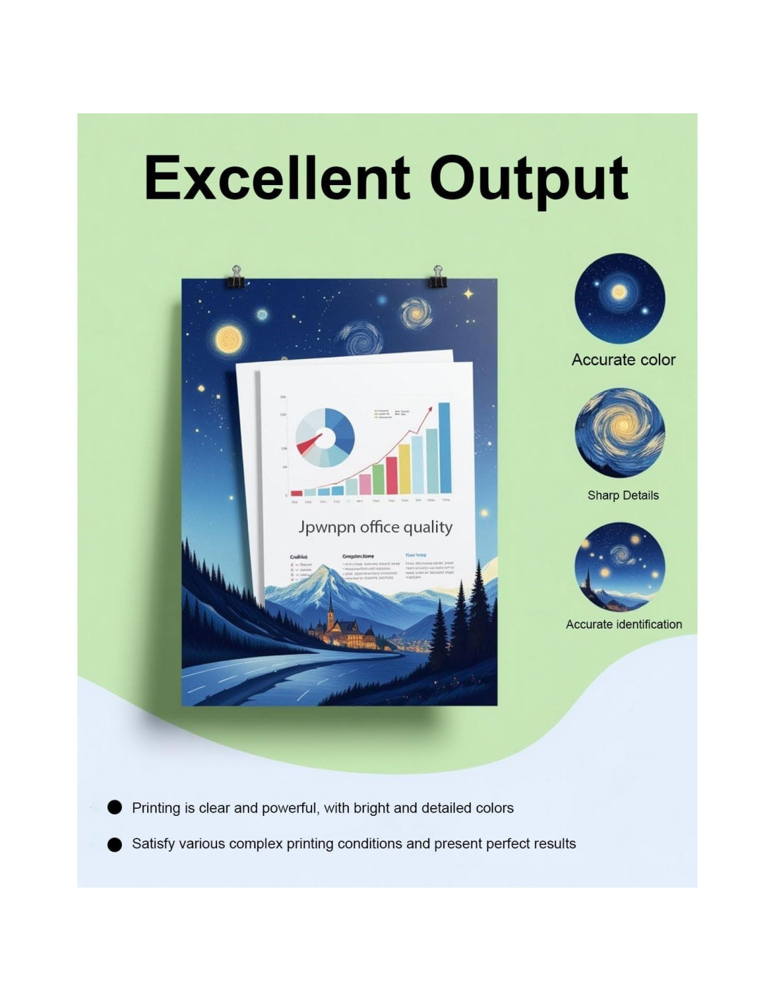 - Impresión clara y no desvanecida: Utiliza tinta esférica delicada para imprimir texto de calidad láser y fotos realistas, que no se desvanecerán durante muchos años, adecuada para hospitales, escuelas, gobiernos, empresas comerciales, empresas financieras y otros escenarios.