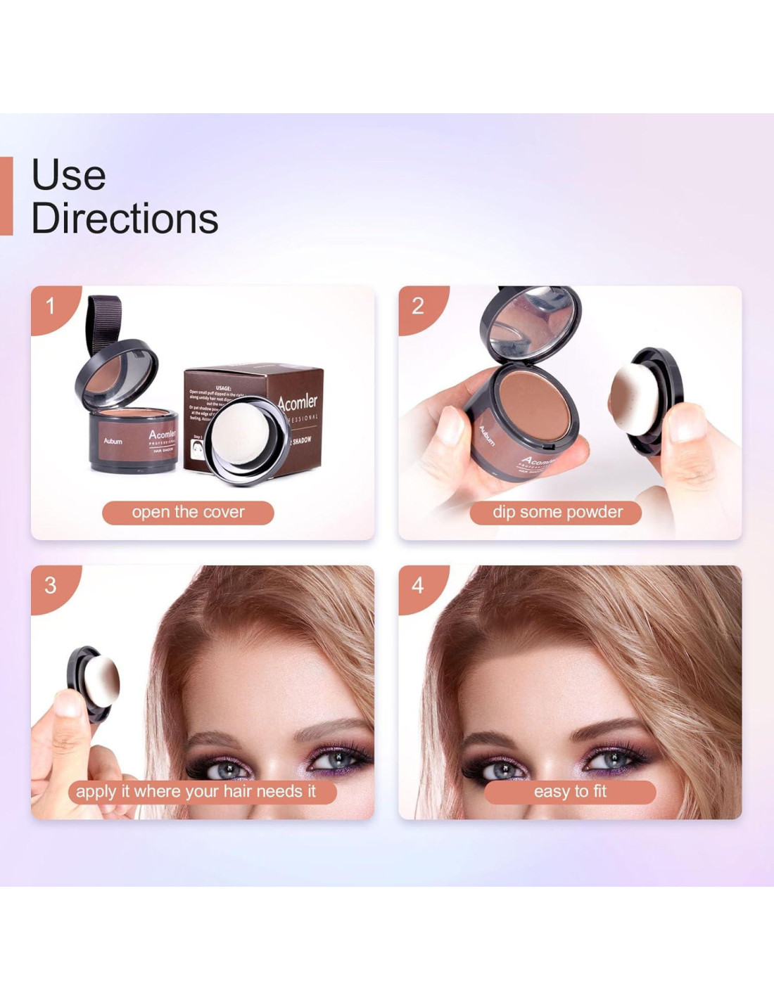 - 1. Cobertura Instantánea Rápida para Retoque de Raíz - El polvo Acomler puede cubrir con precisión las raíces del cabello. Se mantiene hasta que te laves el cabello: ¿Pérdida de cabello? Omite los vergonzosos retoques durante todo el día. El color es firme. Hace que el cabello se vea esponjoso. Hará que el color del cabello sea natural y vibrante. ¡Excelente para todos los tipos y texturas de cabello!