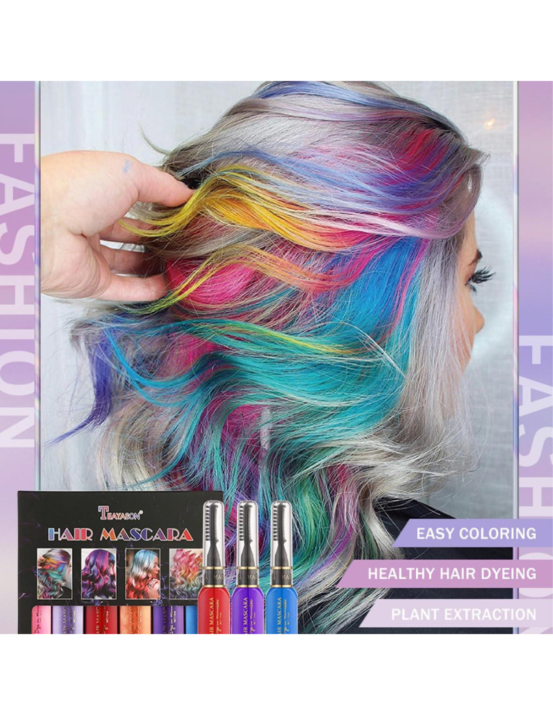 Tinte para Cabello Temporal de 6 Colores, Máscara para Cabello Lavable, Tiza de Color Arcoíris para Niñas, Mujeres y Hombres, Maquillaje DIY para Cumpleaños y Halloween