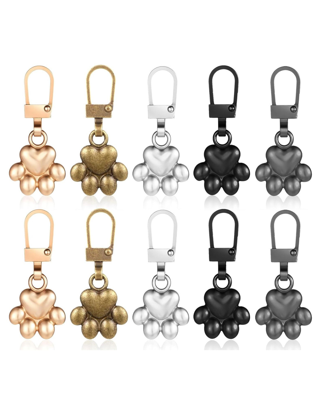 - [Conjunto de Encantos de Cremallera Lindos] Recibirás 10 pcs de tiradores de cremalleras de patita de perro, 5 colores diferentes (bronce, metal de pistola, negro, dorado, plateado), 2 pcs de cada color para satisfacer tus diferentes necesidades