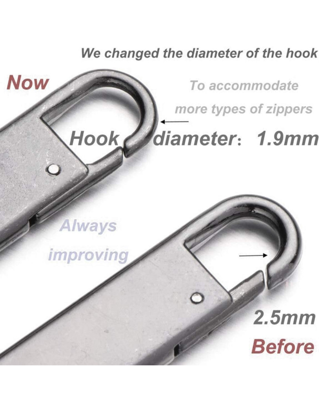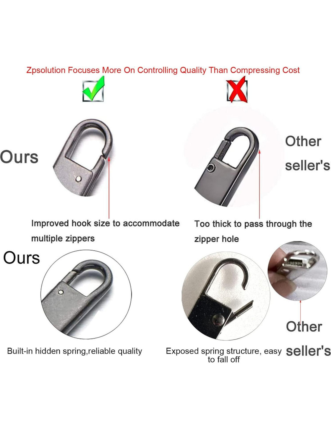 Zpsolution ha estado trabajando arduamente para mejorar. Este es un problema común en otros productos en el mercado. Algunas cremalleras no son adecuadas porque los ganchos son demasiado gruesos. Después de que el producto salió al mercado, recibimos comentarios de muchos clientes y actualizamos el producto: cambiamos el tamaño del gancho del broche de langosta para adaptarlo a más estilos de cremalleras.