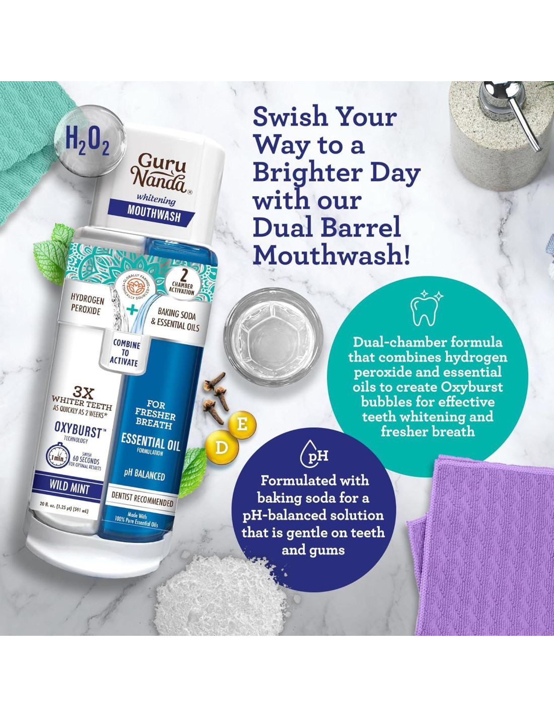 - DIENTES DESLUMBRANTES HECHO FÁCIL: Logra un blanqueamiento dental fácil con el Dúo Maravilla Blanqueadora de GuruNanda. El Enjuague Bucal Oxyburst de Doble Barril y las Tiras Blanqueadoras de Dientes se combinan para ofrecer una sonrisa visiblemente más brillante y una higiene bucal óptima con cada uso.