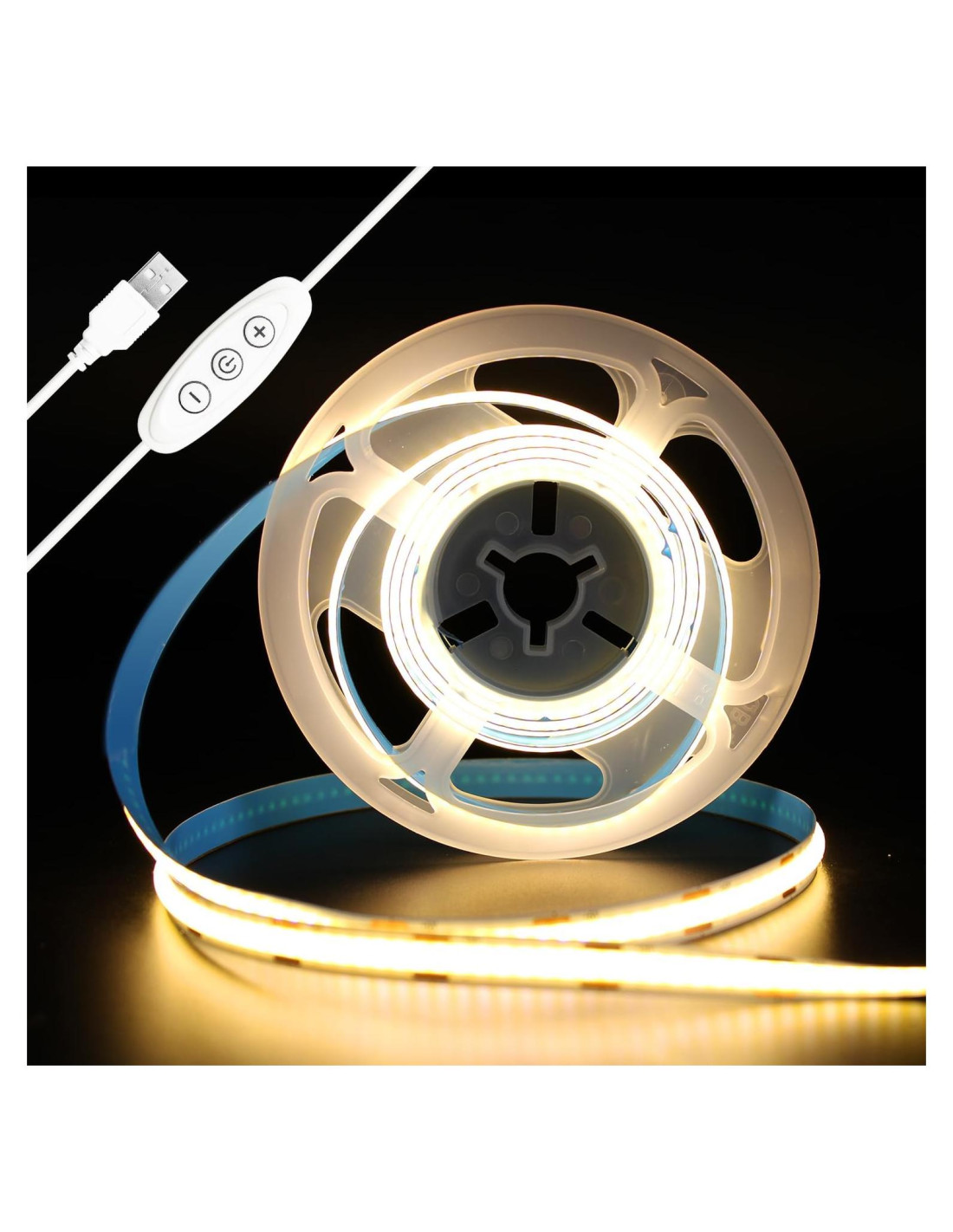 - [Tira LED Alimentada por USB] La tira de luz LED COB blanca cálida de 5V funciona a 5V, esta luz LED flexible puede ser alimentada por USB, haciendo que su fuente de energía sea versátil. Conéctala a cualquier dispositivo, como un banco de energía, cargador de teléfono móvil, computadora, escritorio, laptop, tableta, TV, etc.