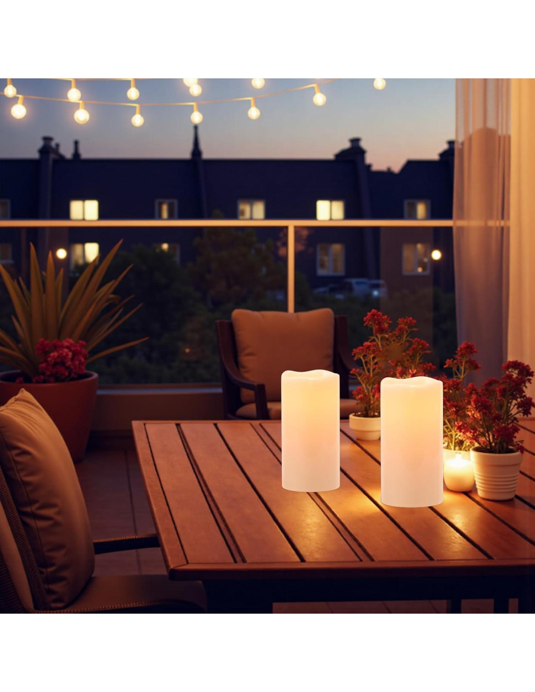 - Uso Versátil en Interior y Exterior: Estas velas LED de pilar sin llama están diseñadas para entornos tanto interiores como exteriores, ofreciendo un resplandor ambiental seguro sin los riesgos asociados con las velas tradicionales. Perfectas para usar en patios, jardines, salas de estar o baños
