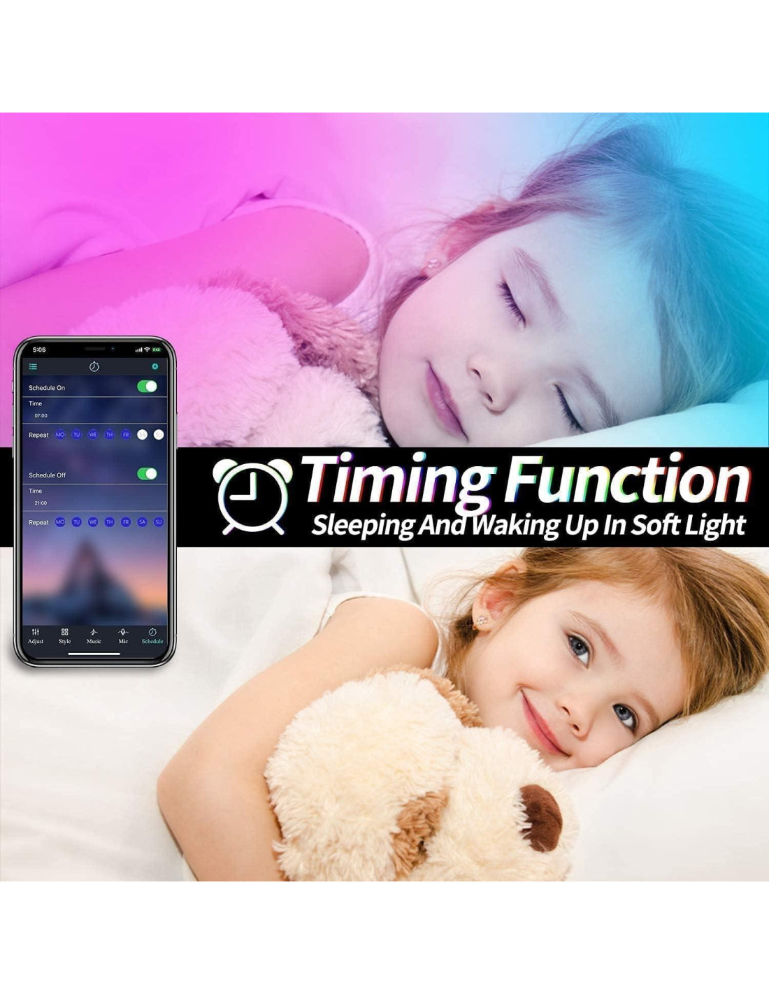 - Configuraciones de temporización inteligente: Las luces LED pueden reemplazar tu alarma de reloj. Las tiras de luces LED RGB te permiten preestablecer la hora para encender y apagar las luces LED y cambiar de color en ciertos momentos, simplemente disfrútalo de una manera inteligente.