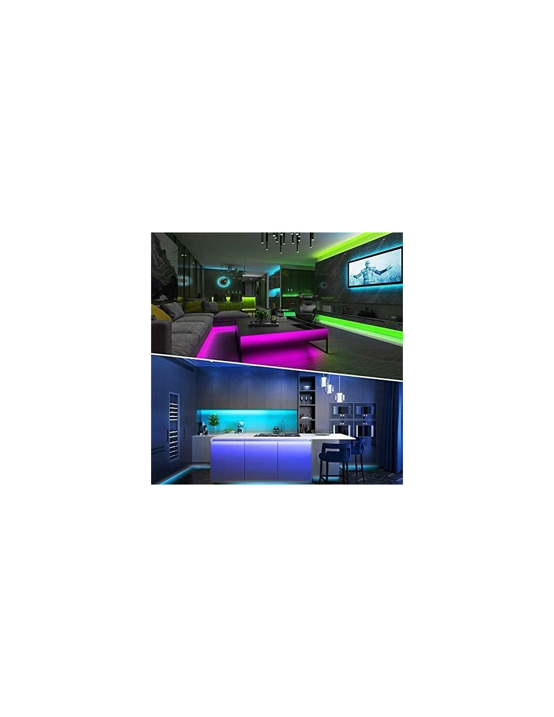 - APP Inteligente y DIY: La tira de luces LED se puede controlar libremente mediante control remoto IR o APP inteligente con millones de colores diferentes y modos de iluminación. Las luces LED son coloridas y duraderas, con brillo ajustable, también puedes crear tus propios colores únicos para adaptarse al estado de ánimo de la habitación.