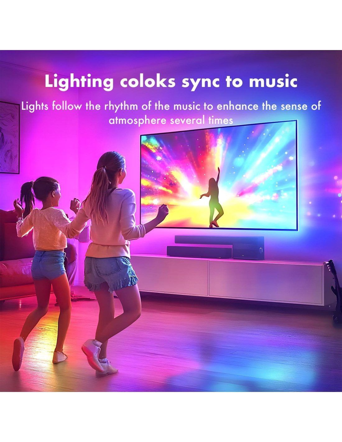 - [Sincronización Musical y Alimentación USB] : Con un micrófono de alta sensibilidad incorporado, los colores de la retroiluminación LED de la TV se sincronizan con la música y el sonido de la TV, ayudándote a crear la atmósfera que necesitas. Las luces LED para TV son alimentadas por un interfaz USB, pueden encenderse/apagarse de manera sincrónica con la mayoría de los modelos de TV. Función de memoria disponible, las luces LED para TV seleccionan automáticamente el nivel de brillo y color que elegiste antes al encender.