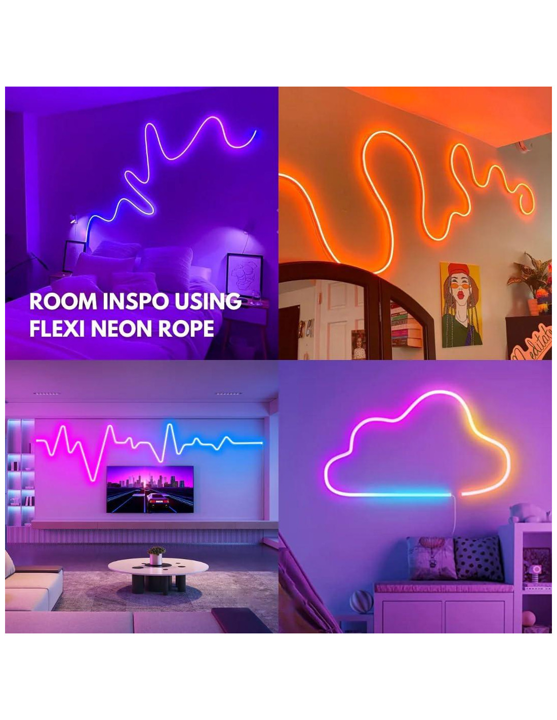 - 16 MILLONES DE COLORES La tira de LED RGB Neón se puede personalizar con hasta 16 millones de colores, lo que puede proporcionar más opciones posibles según diferentes escenarios, la tira RGB muestra un color sólido a la vez, brindándote una fuerte sensación de atmósfera.