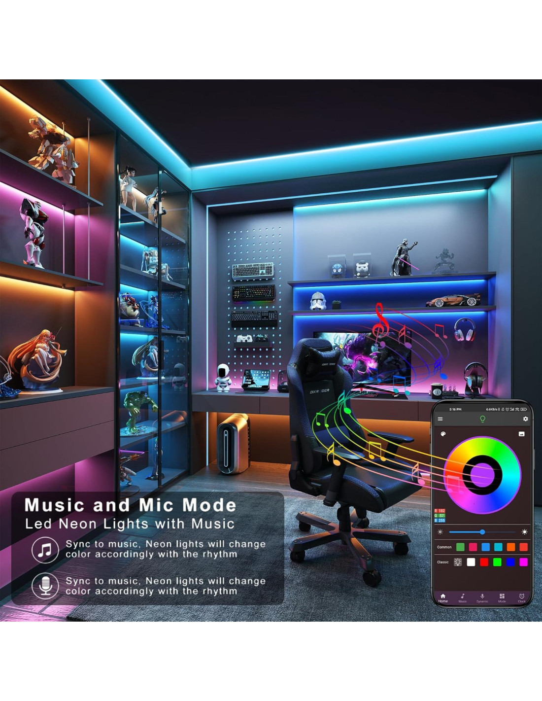 - [Multiuso] La tira de luces LED con control remoto y aplicación tiene muchos modos de escena para crear una atmósfera festiva que coincida con tu estado de ánimo o actividad. Es ideal para decoración del hogar y perfecta para fiestas de cumpleaños, Navidad, Pascua, Halloween, carnaval, baile de graduación, bodas o uso diario