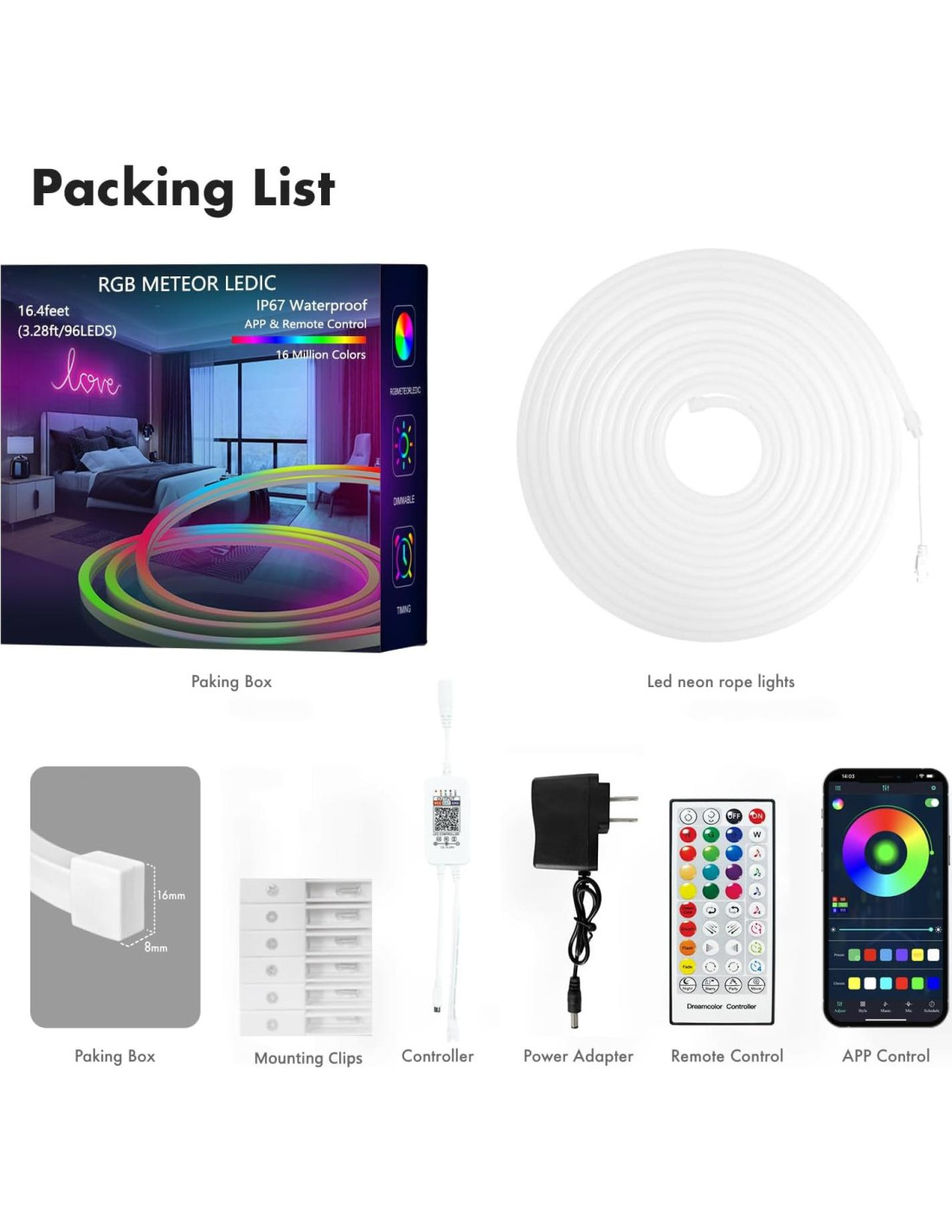 - [A prueba de agua y Seguro] Nuestra barra de luz de tira de neón no solo es adecuada para uso en interiores, sino que también es perfecta para iluminación exterior con clasificación de impermeabilidad IP67, lo que garantiza un funcionamiento estable a largo plazo en entornos exteriores. Las tiras LED de neón son alimentadas por 24V de bajo voltaje, lo que reduce el nivel de peligro. Ya sea que desees crear una atmósfera de fiesta única o simplemente quieras agregar un toque de color a tu jardín, nuestras tiras de luz son la elección perfecta. (El controlador no es a prueba de agua)