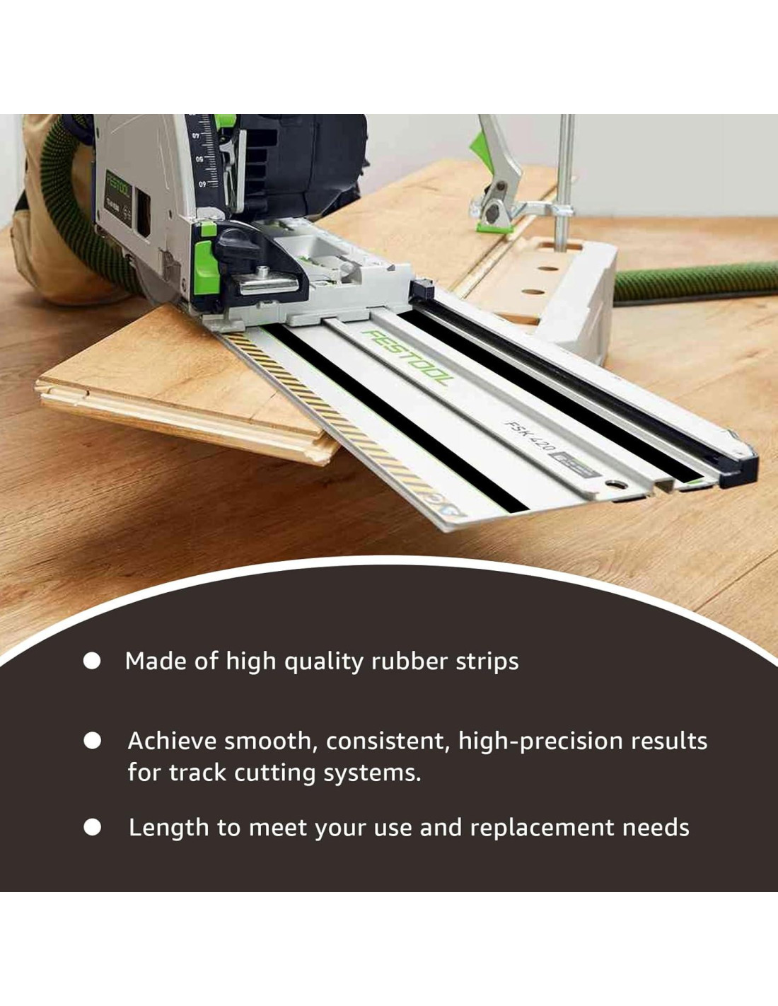 - [Material Premium] Fabricada con goma de alta calidad, esta tira de guardabarros para sierra circular es fuerte, duradera y de larga duración. El material adhesivo asegura un ajuste seguro y ayuda a mantener cortes limpios y sin astillas para resultados óptimos.