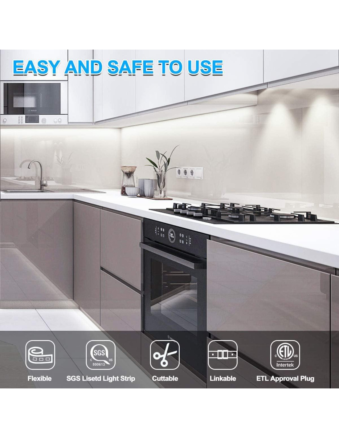 - Fácil y seguro de usar: La fuerte cinta adhesiva de respaldo se puede pegar a cualquier superficie interior seca y limpia para instalar la iluminación de tira LED fácilmente, viene con clips adhesivos adicionales y tornillos para fijarla firmemente. Y las tiras LED están certificadas por SGS y su fuente de alimentación tiene certificación ETL con protección contra cortocircuitos, puedes usarla de forma segura.