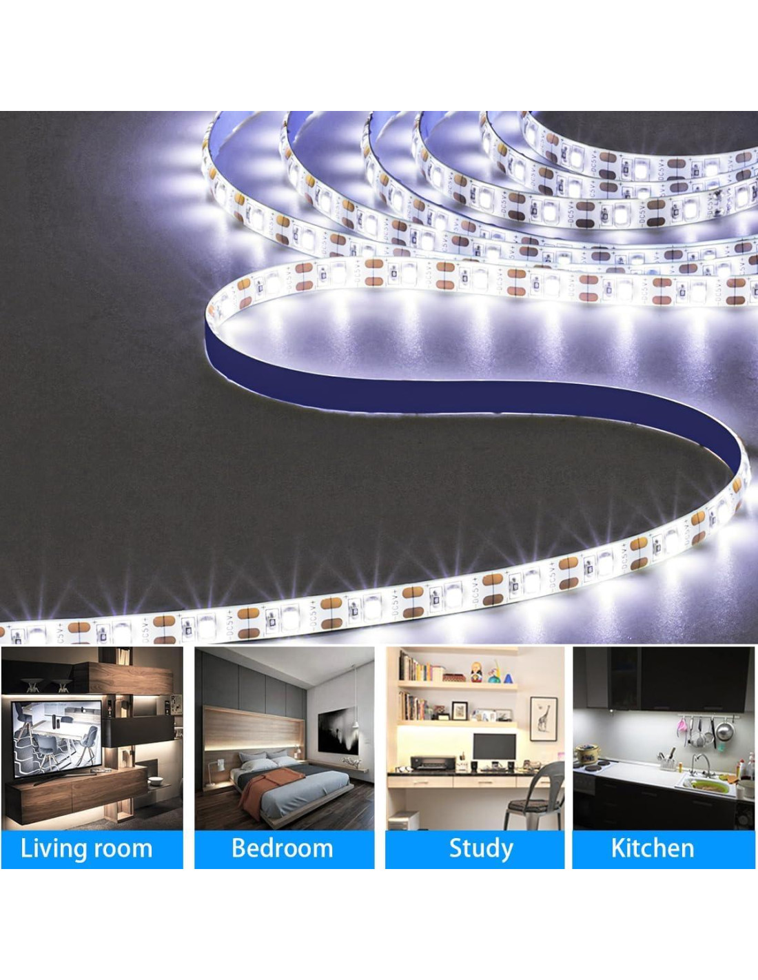- [Aplicación] Esta tira de luces LED USB de 5V emite una brillante luz blanca de 6000K, 3M (9.84Ft), 180 LEDs, con interruptor, para dormitorio, cocina, luz de fondo, iluminación de fiesta, camping, etc., ahorro de energía y segura de usar