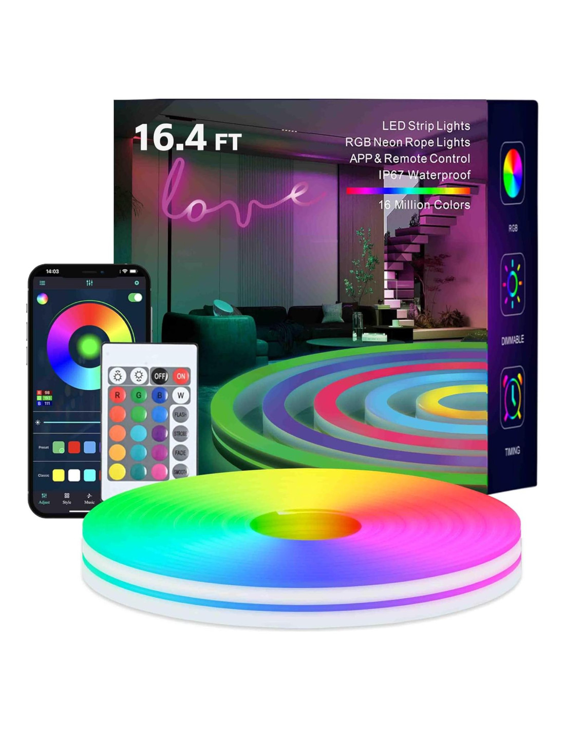 - [Diseño seguro y duradero] la tira de neón utiliza material seguro, duradero y a prueba de agua, soportando diversas condiciones al aire libre. Adecuado para interiores, dormitorio, árbol de Navidad, patio y otros lugares. Las tiras LED de neón son alimentadas por 24V de bajo voltaje, lo que reduce el nivel de peligro.