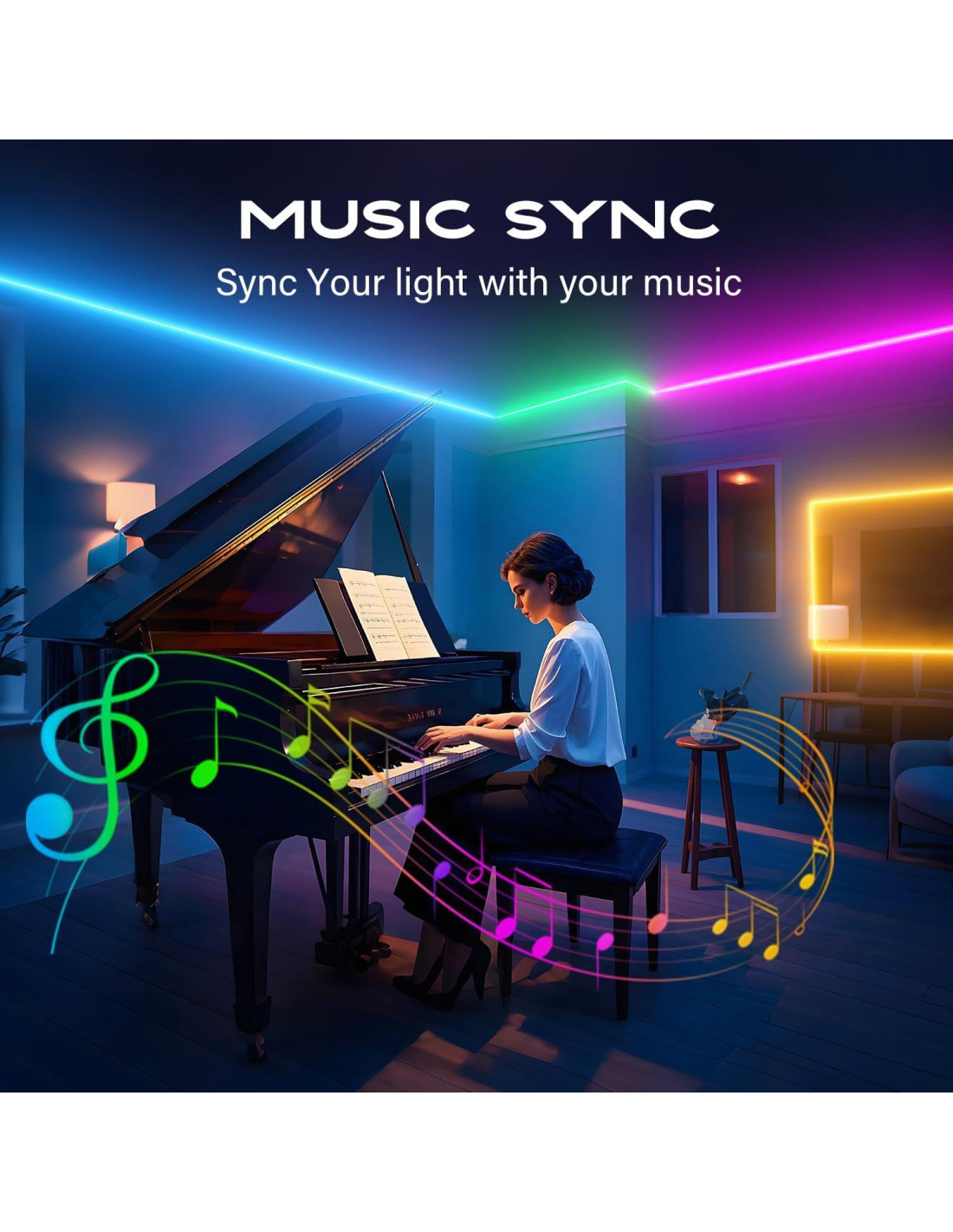 - Control de APP y Remoto Inteligente: Las tiras de LED para dormitorio se pueden controlar fácilmente a través de la app o el control remoto. El micrófono sensible sincroniza los patrones de luz con los ritmos de la música a través de bluetooth, ofreciendo experiencias inmersivas para juegos, noches de cine o fiestas, mejorando el disfrute general del entretenimiento.