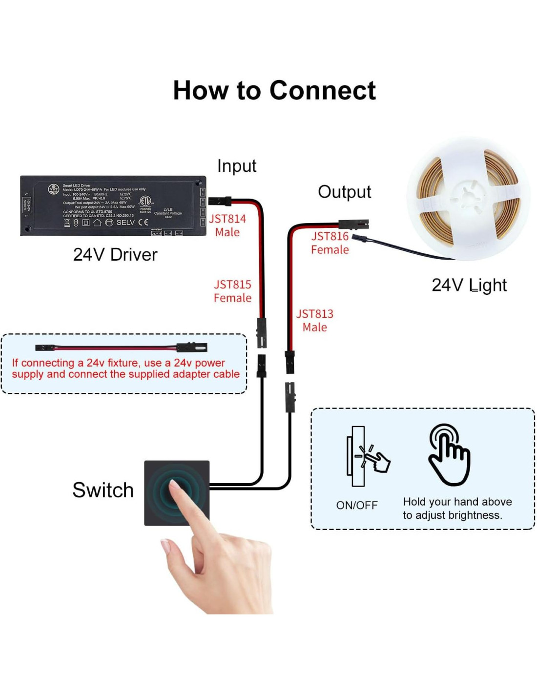 - [Control Táctil Inteligente] toque corto para encender/apagar la luz lentamente, toque largo para atenuación continua en un solo sentido con 10%~ 100% o 100% ~10%. El interruptor tiene función de memoria, cuando enciende la luz nuevamente, el brillo será el mismo que la última vez que se apagó. (Se reinicia automáticamente después de un corte de energía).