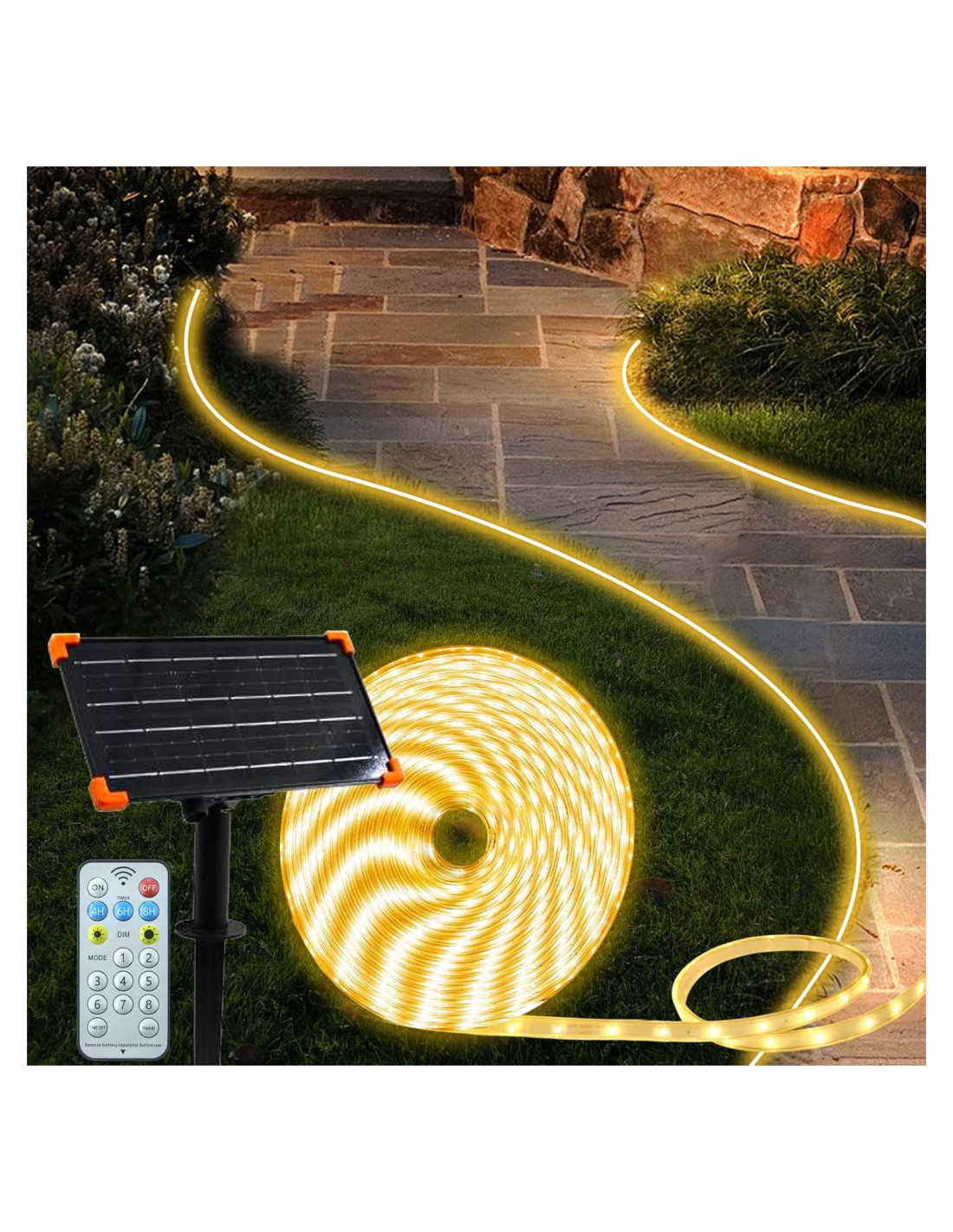 Las tiras de luces LED solares impermeables super largas pueden decorar grandes áreas para crear una atmósfera cálida, acogedora y romántica. Estas luces de tira LED son eficientes en energía, ahorrándote dinero en las facturas de electricidad. 6-8 horas de carga automática durante el día, se encienden automáticamente durante 8-12 horas por la noche. No están limitadas por el espacio y la fuente de alimentación. Cargando al enchufar en el puerto DC durante el clima lluvioso y nublado, puede durar de 3 a 5 noches cuando está completamente cargada. No te preocupes por los días lluviosos. El diseño impermeable y recargable iluminará tu entorno con un brillo mágico. Crea una atmósfera encantadora para la decoración al aire libre e interior, como jardín, patio, escaleras, caminos, piscinas, etc. ¿Se puede encender manualmente durante el día? Sí, pero el panel solar tiene función de sensor de luz. Si deseas que se encienda durante el día, cubre el panel solar con un paño de color oscuro o pon el panel solar al revés. ¿Se pueden cortar las tiras para ajustarse a la longitud requerida? Sí, puedes cortar a lo largo de la línea de tijeras. La parte conectada al panel solar seguirá funcionando como antes, pero el otro componente ya no se encenderá sin conector. ¿Se puede convertir para usar energía eléctrica en lugar de solar? Sí, puedes enchufarlo al puerto de carga DC para almacenar energía. Luces decorativas de alta calidad, siempre te brindan una sensación cálida y cómoda. ¡Ilumina la decoración de tu hogar! Transforma tu espacio exterior en un retiro mágico con la linterna de girasol alimentada por energía solar. Deja volar tu imaginación mientras conjuras el escenario perfecto para tu reunión fantasmal.