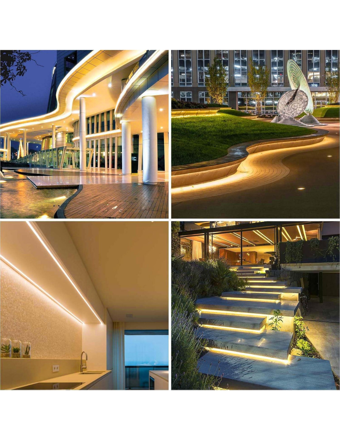 - Super brillante y lineal: las tiras de luces LED COB son una nueva tecnología mejorada en comparación con las tiras LED SMD tradicionales, un total de 2400 piezas (16.4ft/5m) de chips LED en la placa PCB, alta densidad de LEDs y luz uniforme con un ángulo de emisión amplio de 180 que tiene, el efecto de la iluminación de cuerda LED COB se ve más lineal y sin puntos. Entrada de bajo voltaje seguro de 24vdc (fuente de alimentación no incluida)
