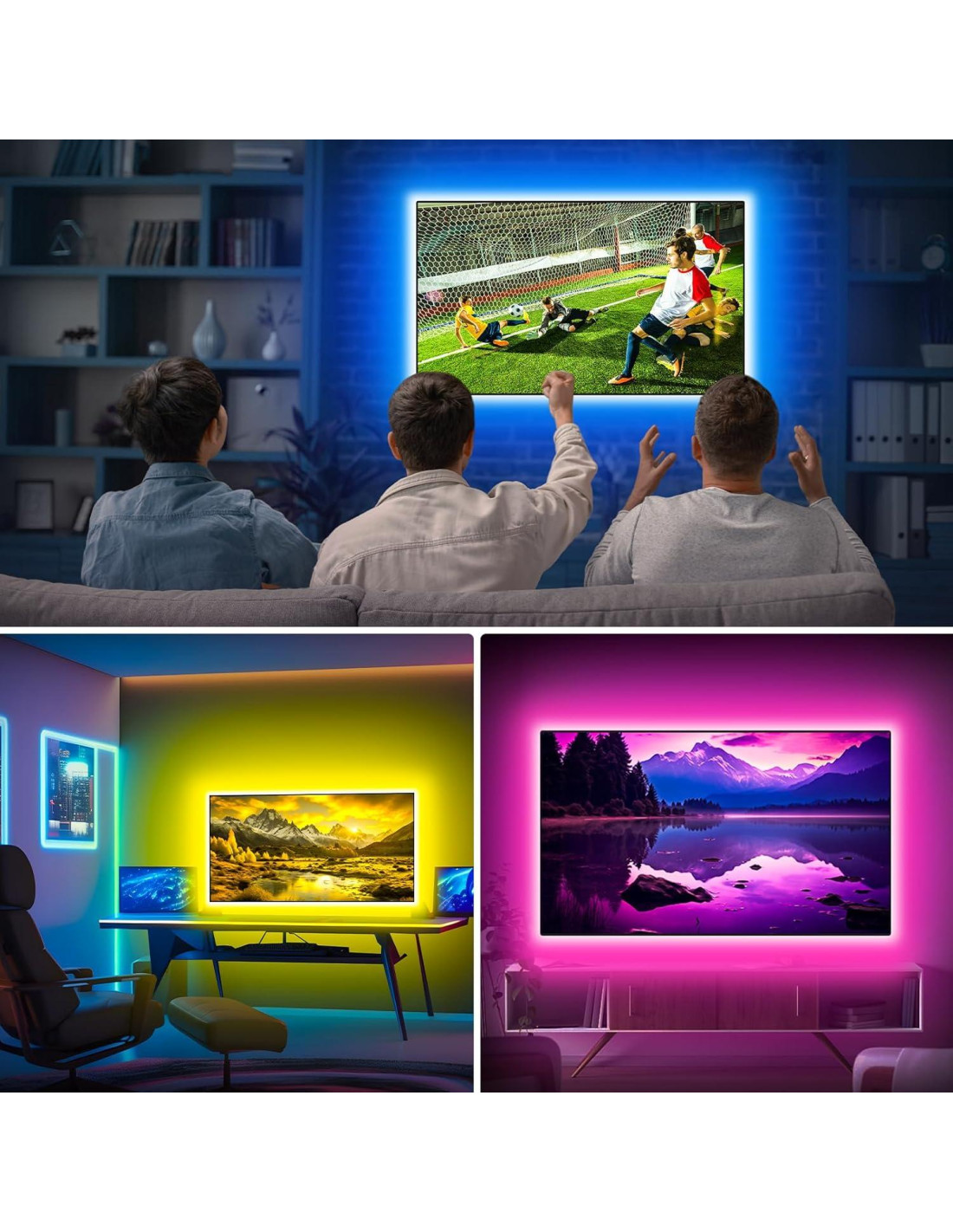 - [Amplia aplicación] Esta es una tira de luz LED para TV muy genial con más de 21 modos dinámicos y 16 millones de cambios de color. La tira de luces LED RGB para TV se puede usar para decorar e iluminar cualquier lugar, como iluminación ambiental para TV, monitor de computadora, escritorio de computadora, estantería, zapatero, cocina, sala de estar, dormitorio, etc. Sus efectos de iluminación coloridos y dinámicos son decoraciones perfectas para bodas, cumpleaños, Navidad, Halloween y otros estados de ánimo festivos.