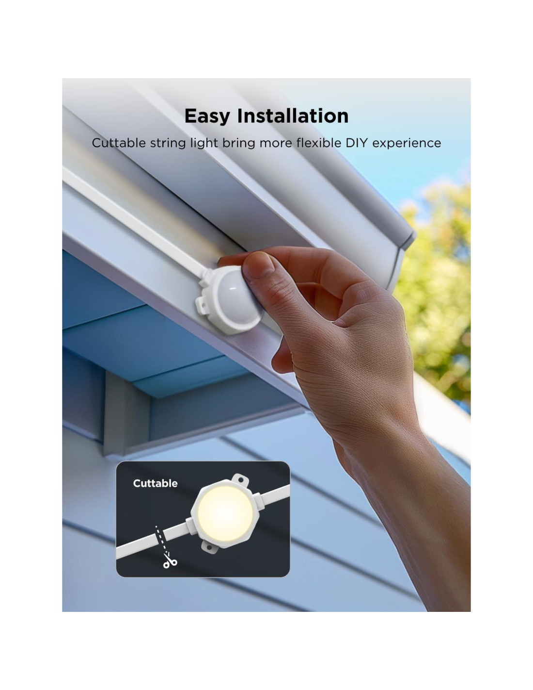 - Brillo brillante y ajustable: Cada luz LED emite una luz blanca de 4000K a 30lm, con temperatura de color cálido y frío ajustable y configuraciones de brillo. Estas luces exteriores son adecuadas para decoración navideña y decoración del hogar.