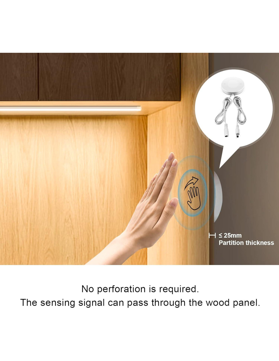 - [Dos tipos de control] regulador de barrido manual y regulador táctil, puede controlar la tira de LED encendido/apagado, ajustar el brillo de la tira de neón COB. para usar detrás de paneles de madera como cocina, gabinetes, armarios o espejos de vidrio. Rango de penetración: <25mm, por favor no acerque a materiales metálicos para evitar interferencias.