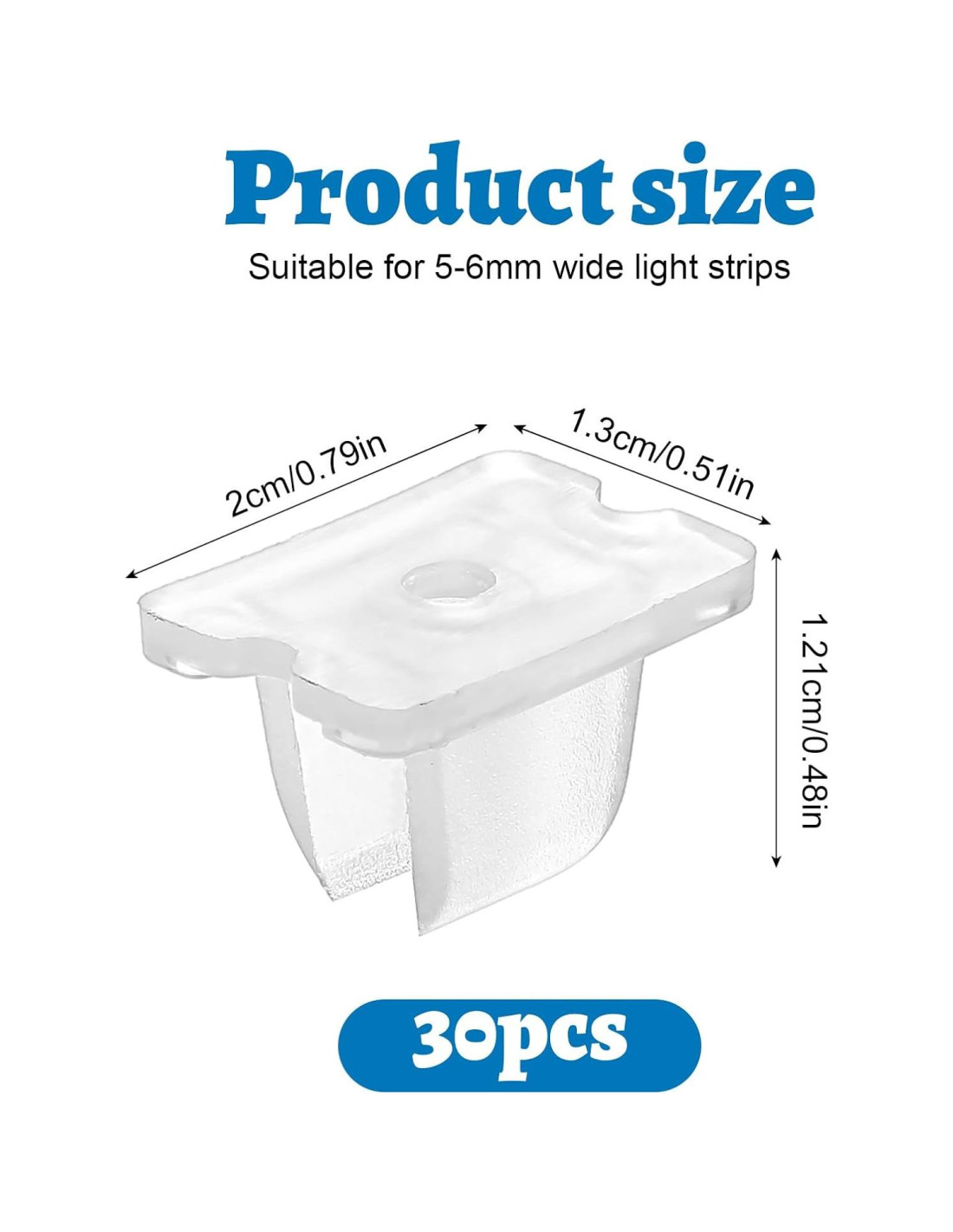 - Paquete Completo: Incluye 30 Pcs clips de luz LED con tornillos, proporcionando una cantidad suficiente para todas sus necesidades de montaje. Estos clips de montaje de cinta LED impermeables aseguran un agarre seguro y confiable para sus cintas LED