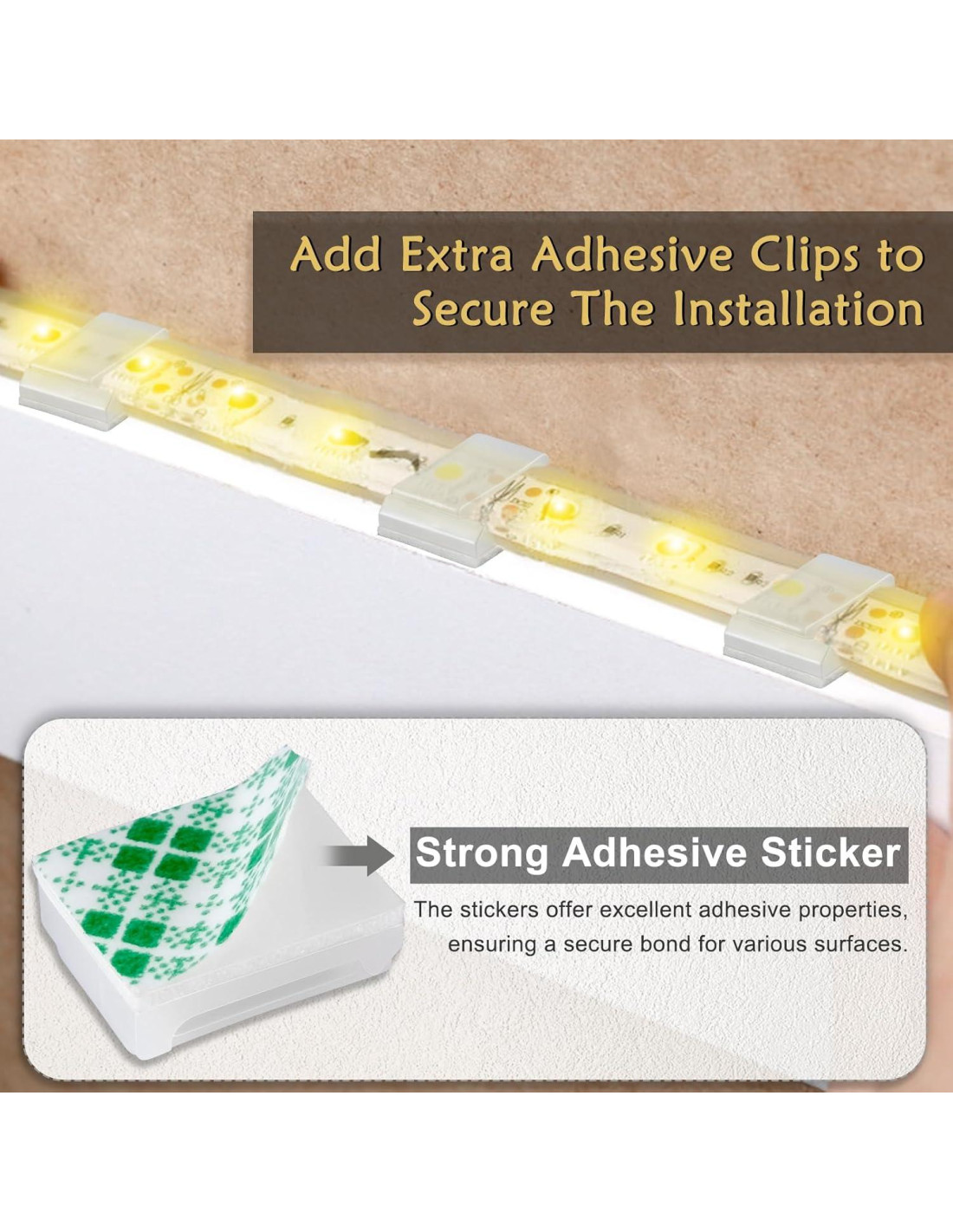 - FIJA TIRAS DE LUZ Y CABLES. Aplicable para tiras de luz LED SMD 3528/5050/2835/5630 a prueba de agua y no a prueba de agua dentro de 12mm de ancho, y cables (más gruesos que 1/6 pulgadas).