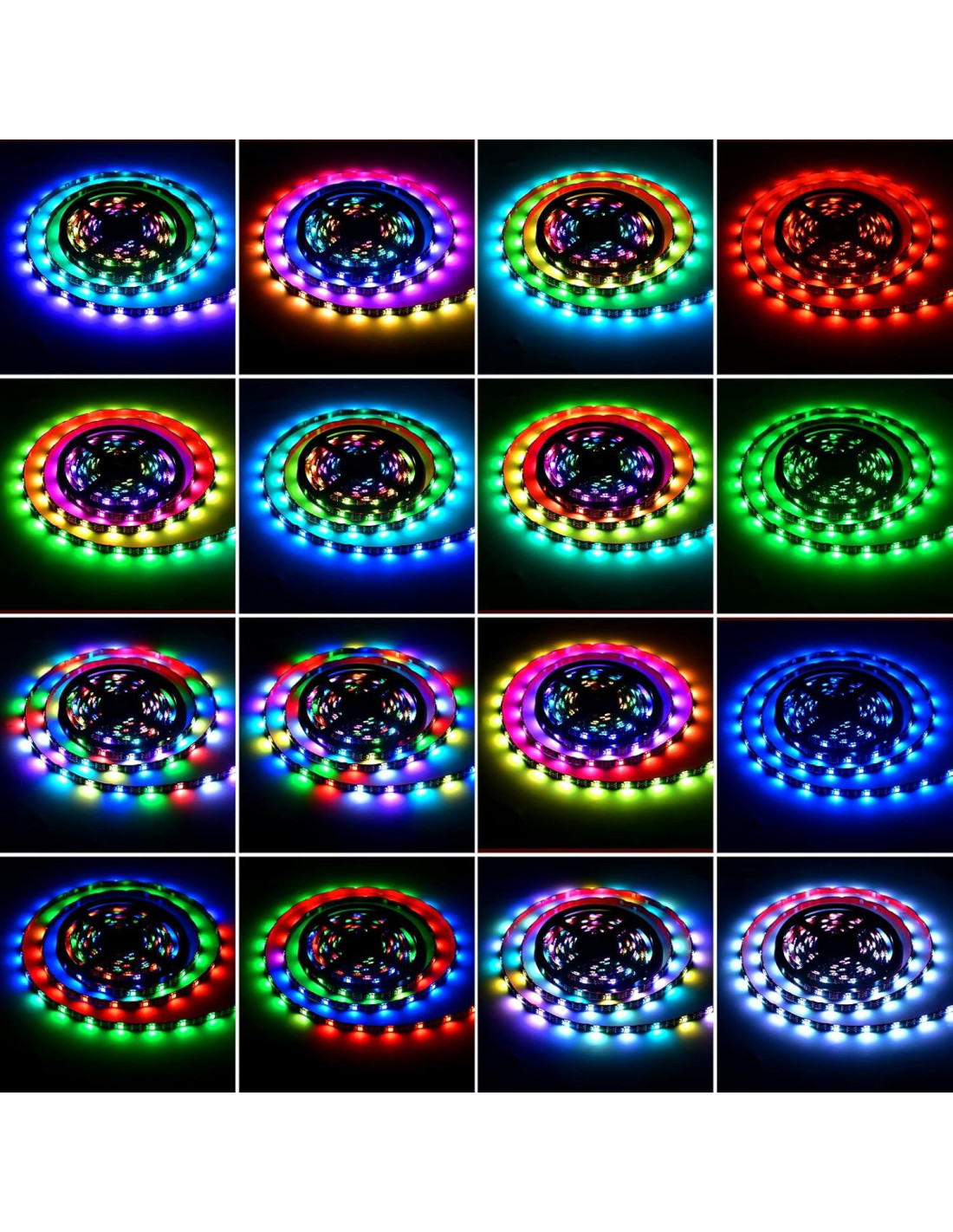 - [Luces IC Mejoradas] En comparación con las luces RGB tradicionales, cada unidad LED integra un chip IC dentro, que puede mostrar diferentes colores y brillo al mismo tiempo, presentando un efecto dinámico de persecución de luz.