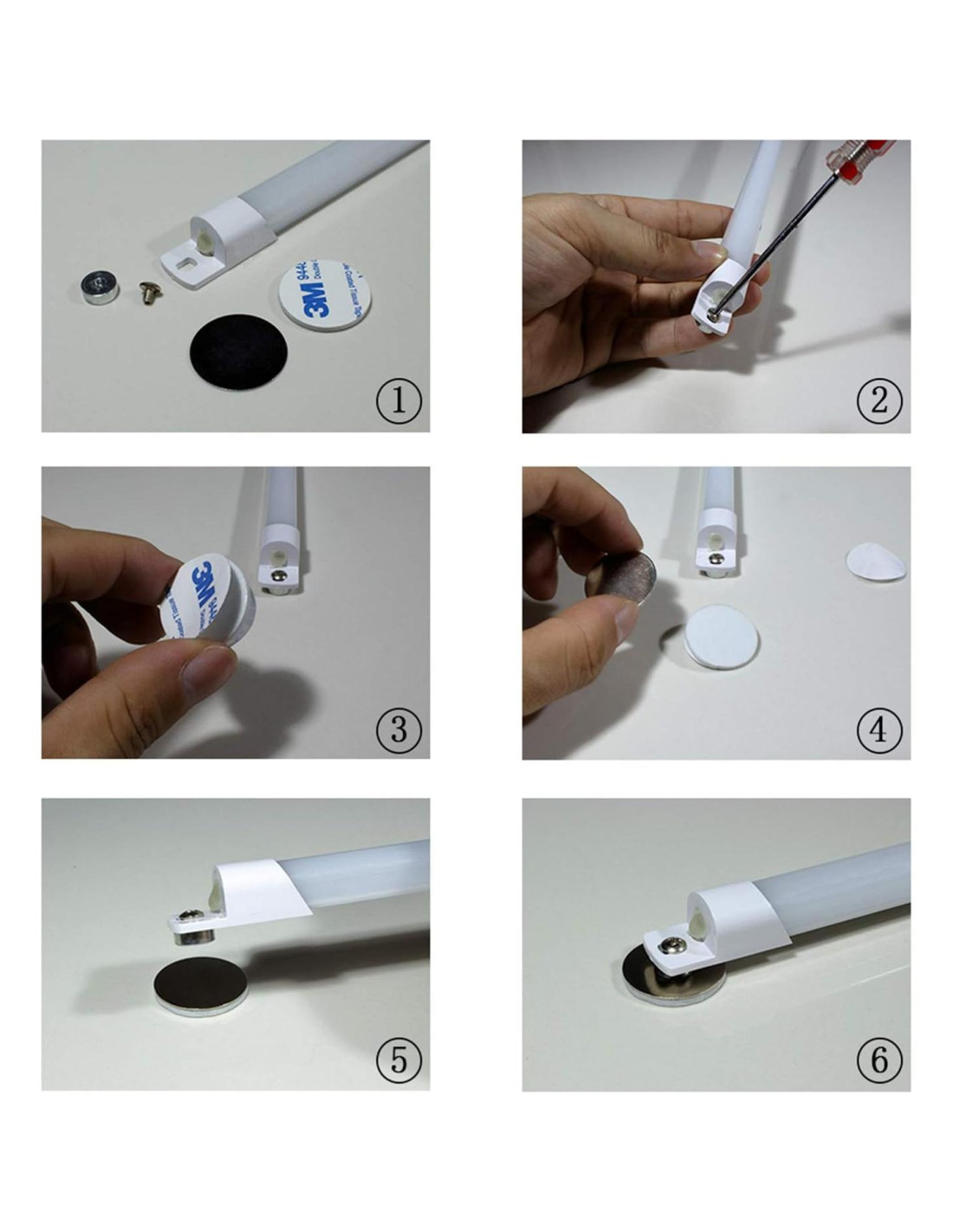 El paquete incluye: 1 x barra de luz LED (el cuerpo de la lámpara adopta una carcasa de plástico sellada integrada, aislada del exterior para garantizar la seguridad.) 2 x imanes pequeños 2 x discos de acero pequeños 4 x almohadillas adhesivas de doble cara