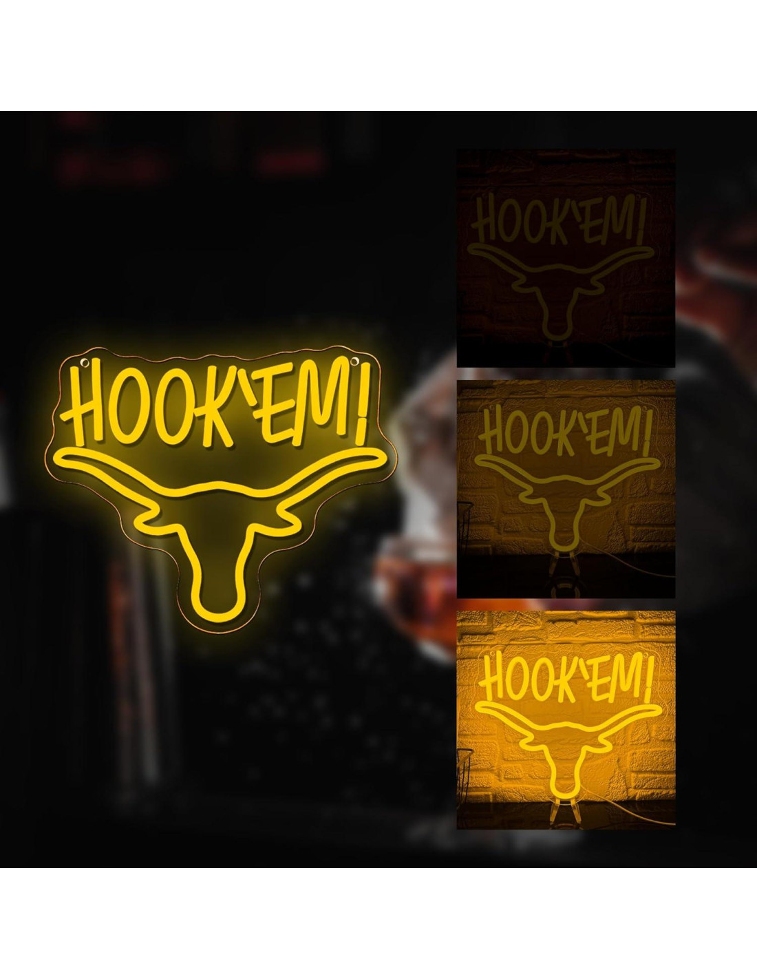 Luz de Neón Hook 'Em Dimmable Signo de Neón LED Amarillo Longhorn Texas Decoración para Sala de Juegos, Man Cave, Dormitorio, Bar - Regalos para Fans Universitarios (33 x 27 cm)