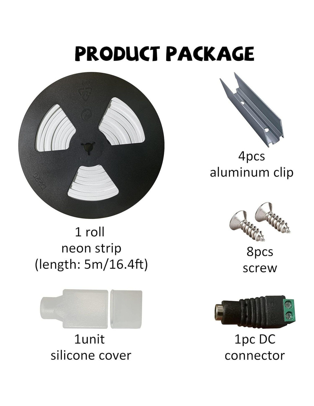 - [Fácil de Instalar] Cable de conexión a la fuente de alimentación de 12V DC en un extremo. Usa tapa de extremo para proteger el otro extremo. Tornillos, clips fijos, tubo termocontraíble, tapas de extremo incluidas, fácil de instalar. Debes usar el tubo termocontraíble para la sección de conexión para que sea impermeable al instalar al aire libre.
