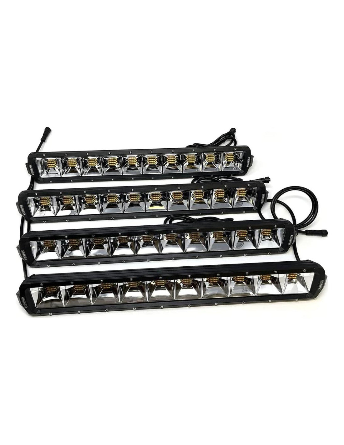 - Componentes incluidos: Cuatro fuentes de alimentación de CA, Cuatro cables de conexión de batería, Cuatro barras de luz LED, Reóstato cableado, Hardware de montaje, Tres cables de conector de parche, Tres conectores T, Control remoto inalámbrico