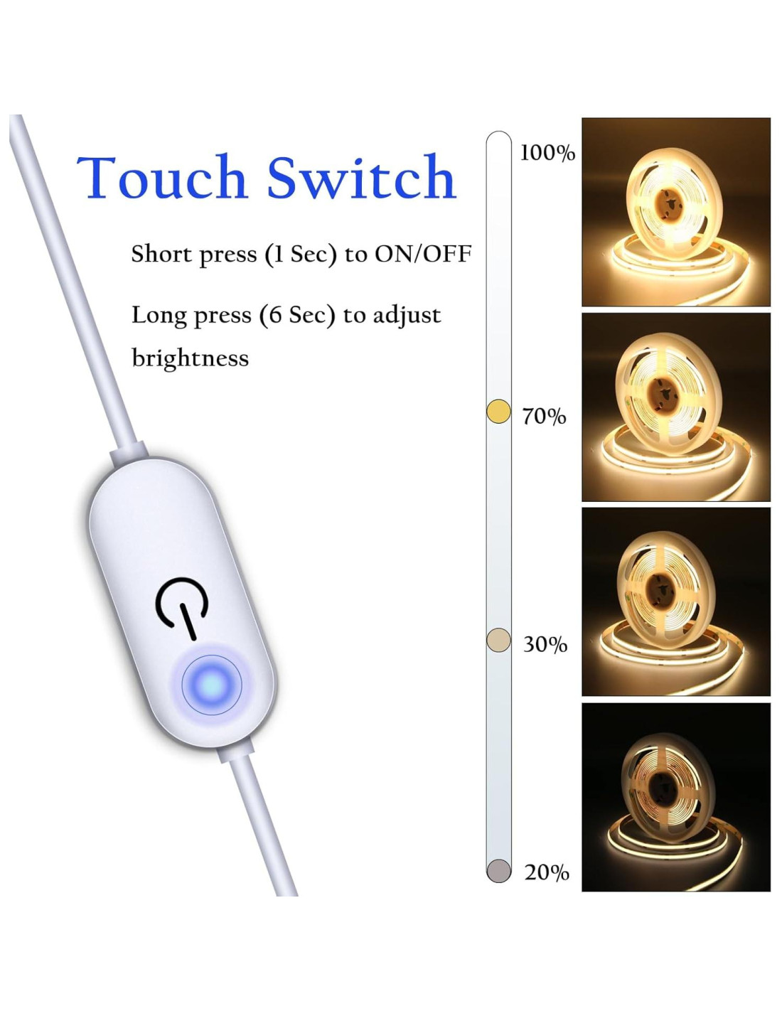 - Ajuste de brillo fácil: Esta tira de luces regulable está equipada con características de ajuste de brillo fáciles de usar, lo que la hace perfecta para cualquier ocasión. El control táctil es altamente sensible y permite un atenuado suave del 20-100%