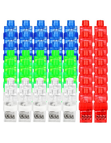 - Cantidad de empaque 60Pcs Luces para dedos por paquete. Alimentadas por baterías de alta capacidad, cada luz para dedos dura hasta 24 horas. Promedio en 4 colores, respectivamente rojo, azul, verde y blanco.
