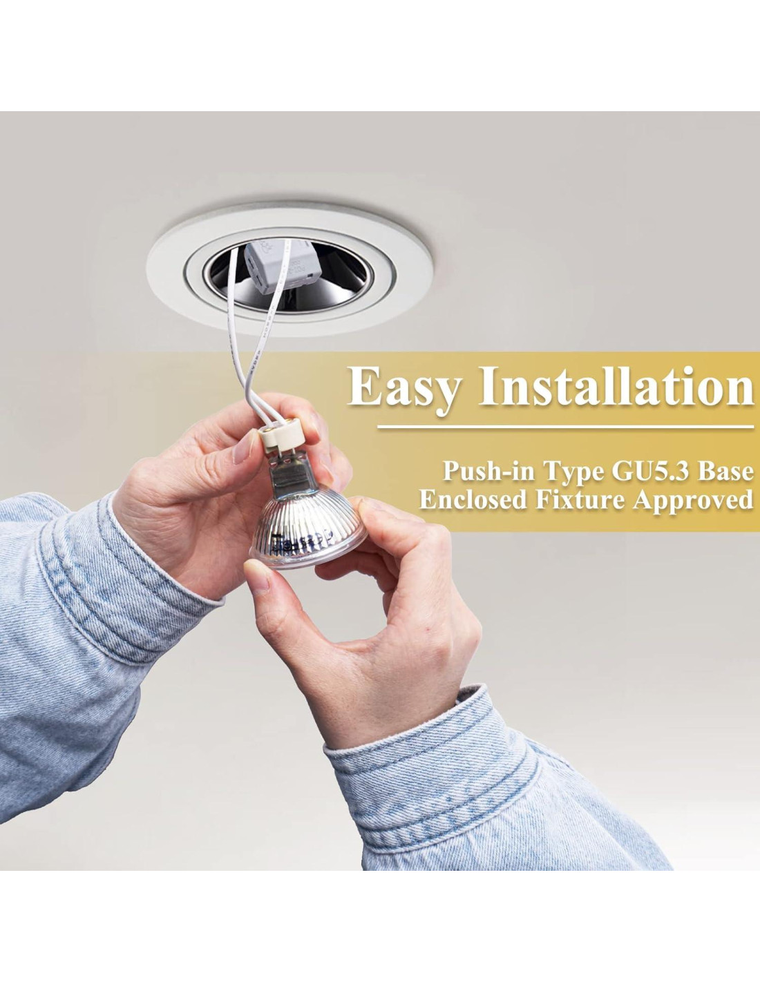 - [Fácil Instalación] Con una base bi-pino estándar GU5.3, la bombilla LED MR16 GU5.3 es fácil de instalar en segundos; uso plug and play, disfrutando fácilmente de una iluminación blanca diurna moderna y enérgica de 6000K. Ideal para luces de paisaje, luces empotradas, focos, luces de riel, luces de acento, etc.