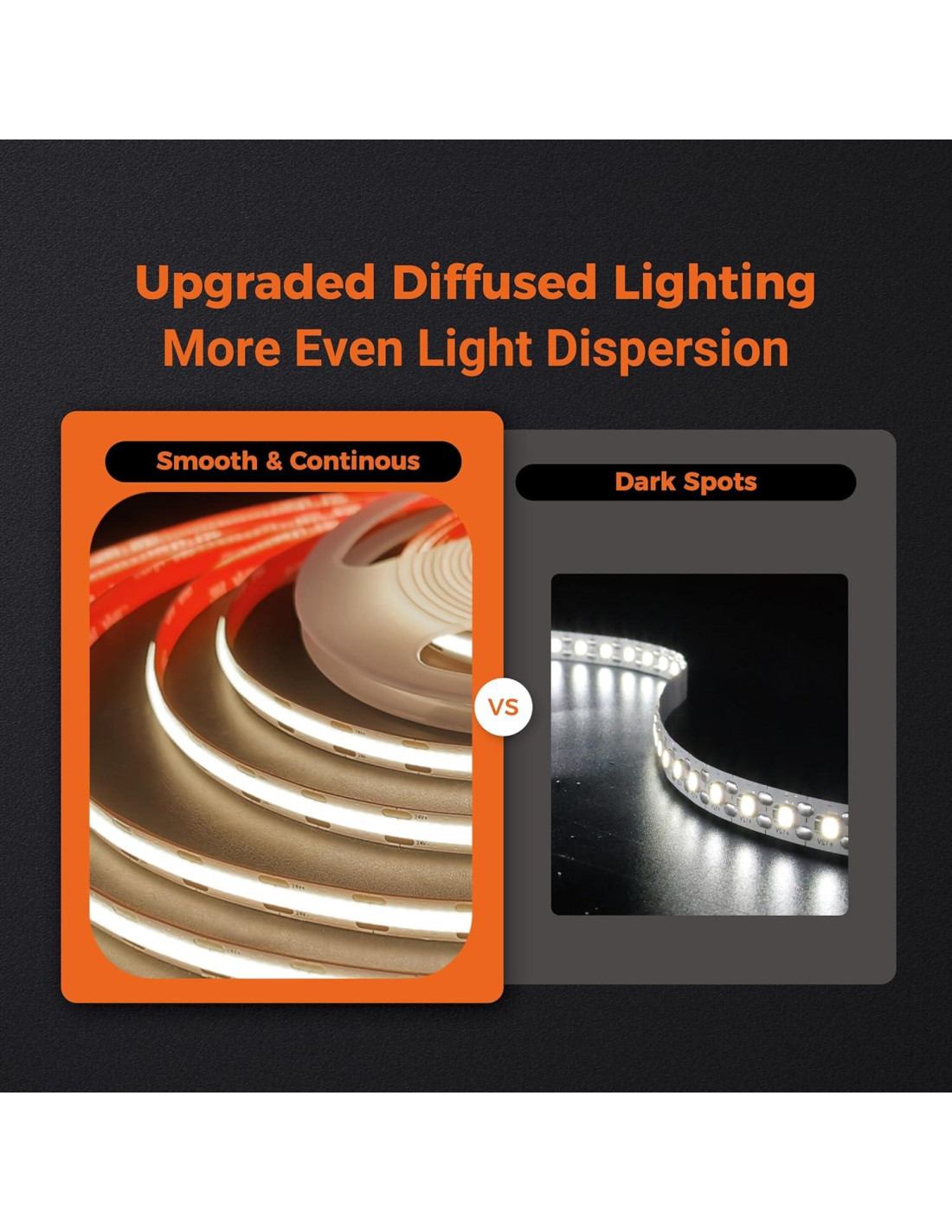 - Cortable y Fácil de Reconectar: Corta cada 1.68 cm para longitudes precisas sin dañar. Usa conectores de 2 pines Fluflux de 8 mm (se venden por separado) para una reconexión sin problemas, esta tira de LED COB industrial es fácil de extender o redirigir alrededor de esquinas. No se requieren herramientas