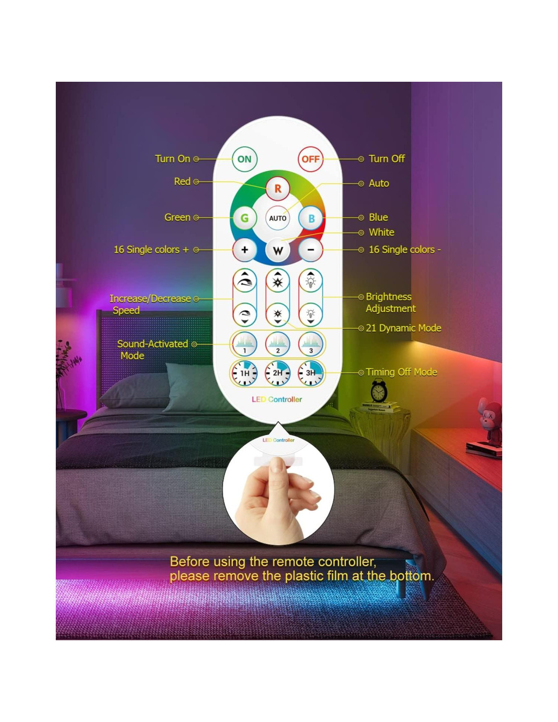 A diferencia de las luces RGB tradicionales, al usar nuestras luces LED para TV DAYMEET, varios colores pueden perseguirse en una línea. La tira de luz muestra un efecto similar a un arcoíris (color de sueño), hay 213 tipos de modos de luz como modo de luz en movimiento, luz de persecución, etc. Recordatorio amable: Nuestras luces de fondo LED para TV tienen cinco modos de aplicación: modo RGB, modo de sincronización de música, 213 modos de color fantásticos, modo de música y modo de temporizador. Luz para TV Daymeet de 5M, adecuada para TV de 32-75 pulgadas. Las perlas de lámpara de tecnología RGB brindan una experiencia de iluminación más brillante. Más de 16 millones de colores cambian, brindándote un efecto más deslumbrante y sorprendente que las tiras de luz LED tradicionales para TV. Modo de música mejorado: micrófono ultrasensible que se sincroniza fácilmente con cualquier tipo de música. Consejo: Asegúrate de que el voltaje de la tira de luz sea de 5V, si el voltaje es superior a 5V, las perlas de la lámpara se quemarán. Si el USB está conectado a la TV, la luminosidad no es suficiente y la tira de luz y el control remoto no funcionan, se recomienda conectar las luces de TV a un enchufe de corriente normal y asegurarse de que el voltaje y la corriente de alimentación sean de 5V y no haya obstáculos. La tira de luz LED para TV Daymeet viene con un control remoto mejorado para que puedas ajustar el brillo, color y modo de forma remota incluso desde la cama o el sofá, disfruta del maravilloso efecto de las tiras de luz LED RGB. No modifiques la secuencia de pines, recomendamos Rojo, Verde y Azul. Con la aplicación, la tira de luz LED para TV Daymeet de 5M con 16 millones de colores puede ajustarse para ti. Crea una atmósfera romántica para tu familia. 1. Verifica que la tira de luz LED funcione correctamente, limpia la superficie y mantenla seca. 2. Planifica la ruta de instalación, quita la capa protectora y pégala. 3. Adhiere las luces de fondo LED para TV. 4. Conéctalas a tu TV para probar la función a través de la APP. La tira de luz flexible es fácil para la instalación en esquinas. Pero no dobles ni pliegues la tira de luz en exceso, de lo contrario, llevará a un mal contacto interno del cable y la tira de luz funcionará de manera anormal.