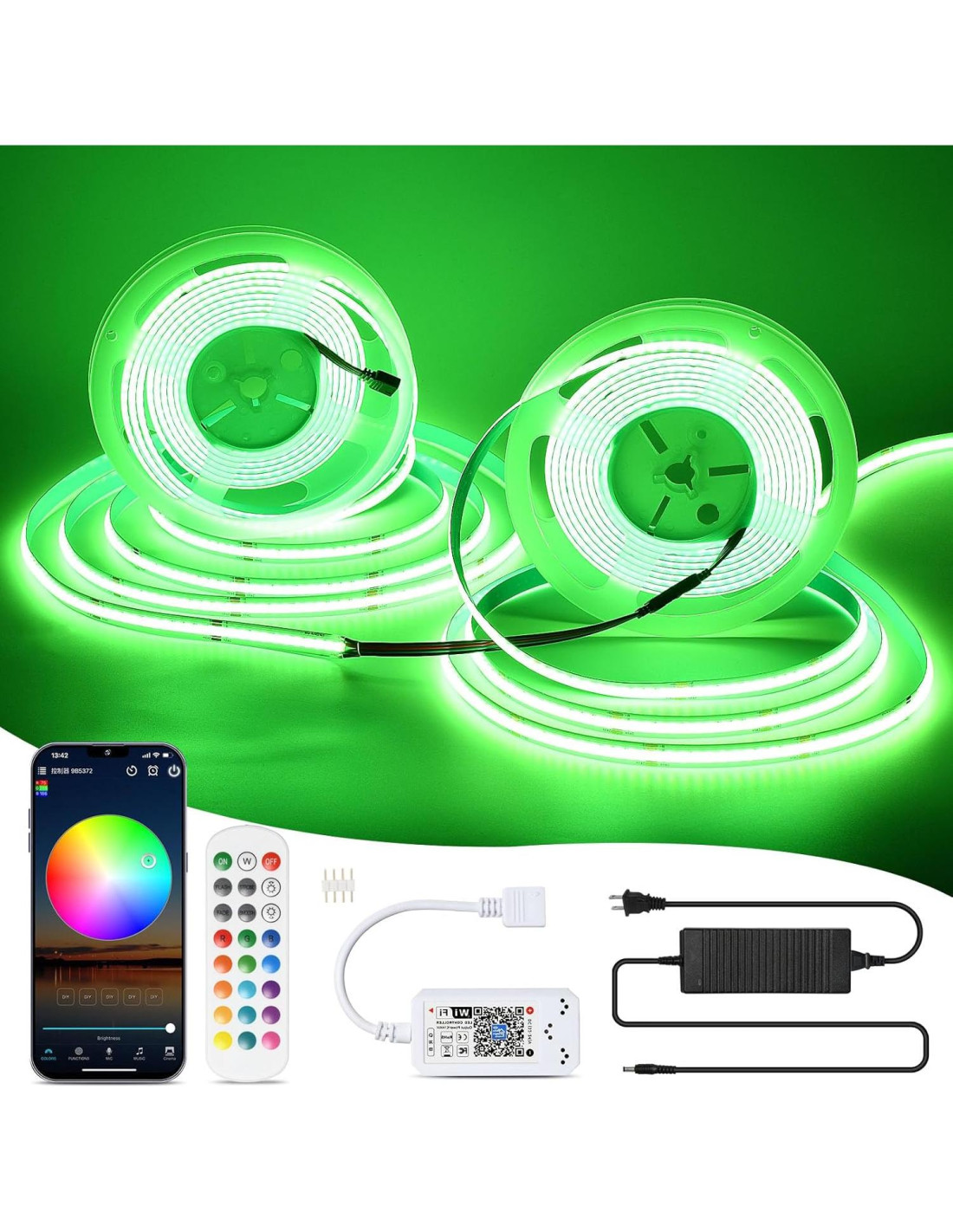 - [Sincronización de Música y Función de Temporización] - Con micrófono de alta sensibilidad incorporado, las luces LED RGB COB pueden sincronizarse con la música. Los colores y la velocidad de cambio cambiarán automáticamente según el ritmo de la música. Según tu tiempo de sueño, también puedes programar tu tira de led para encenderse o apagarse automáticamente en el tiempo establecido. Ilumina tu vida con esta Tira de Led COB RGB y haz la vida más colorida.