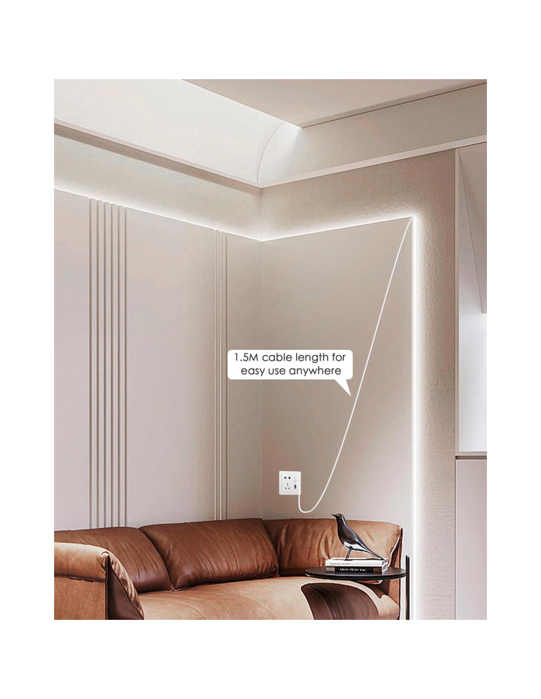 - Conveniente y Fácil de Instalar: Con un cable de alimentación USB de 1.5m (4.92ft) de largo para tu uso diario en cualquier lugar. Y la cinta LED de 5V se puede conectar directamente a cualquier dispositivo con un puerto USB que emita 5V/2A o más, aumentando enormemente tu conveniencia.